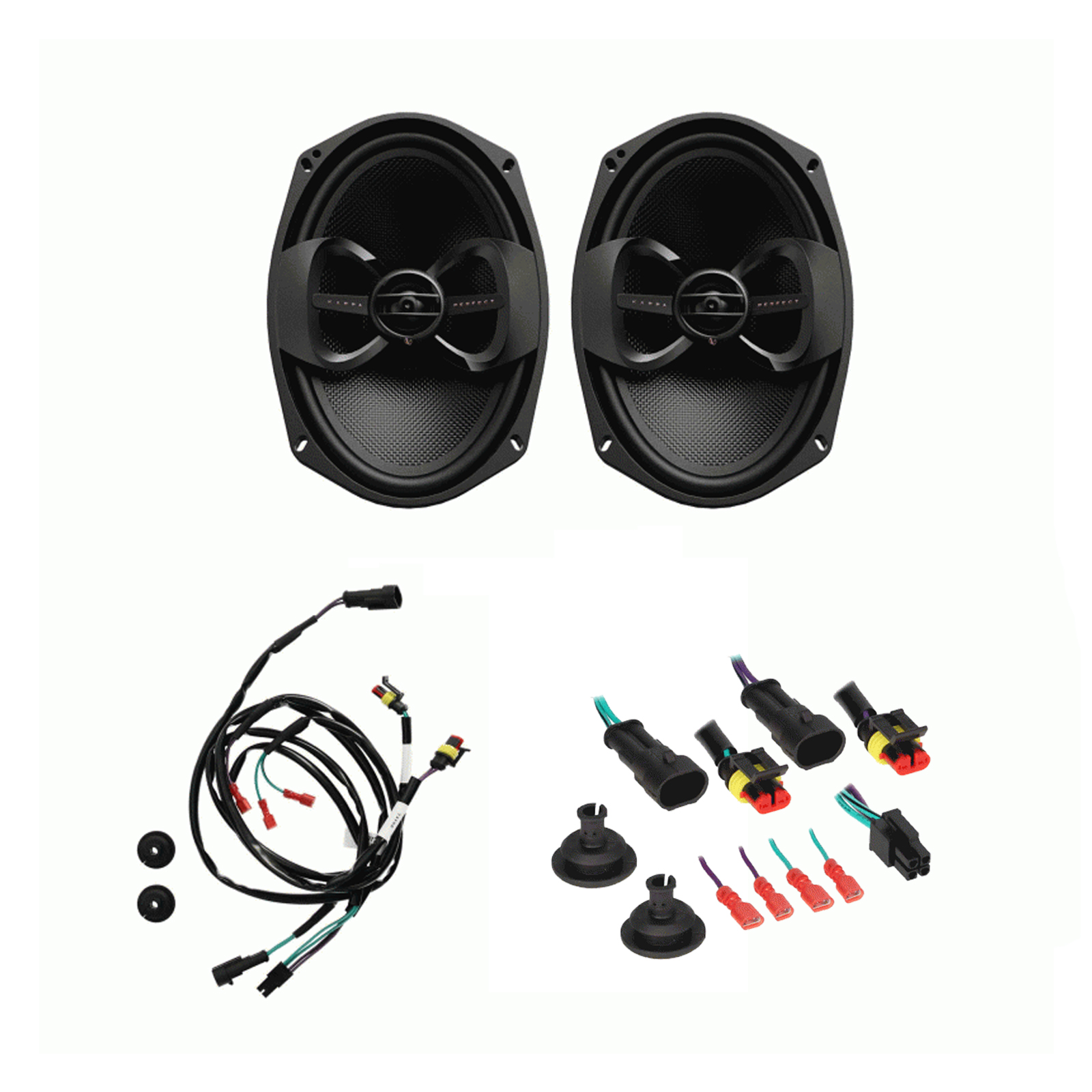 HARMAN Infinity Kappa Perfect 900X 6×9” 300 Watt Water-Resistant Speakers (Pair), Saddle Tramp Backbone Wiring Harness and Installation Accessories (2014-2022 Harley-Davidson Street Glide, Road Glide)