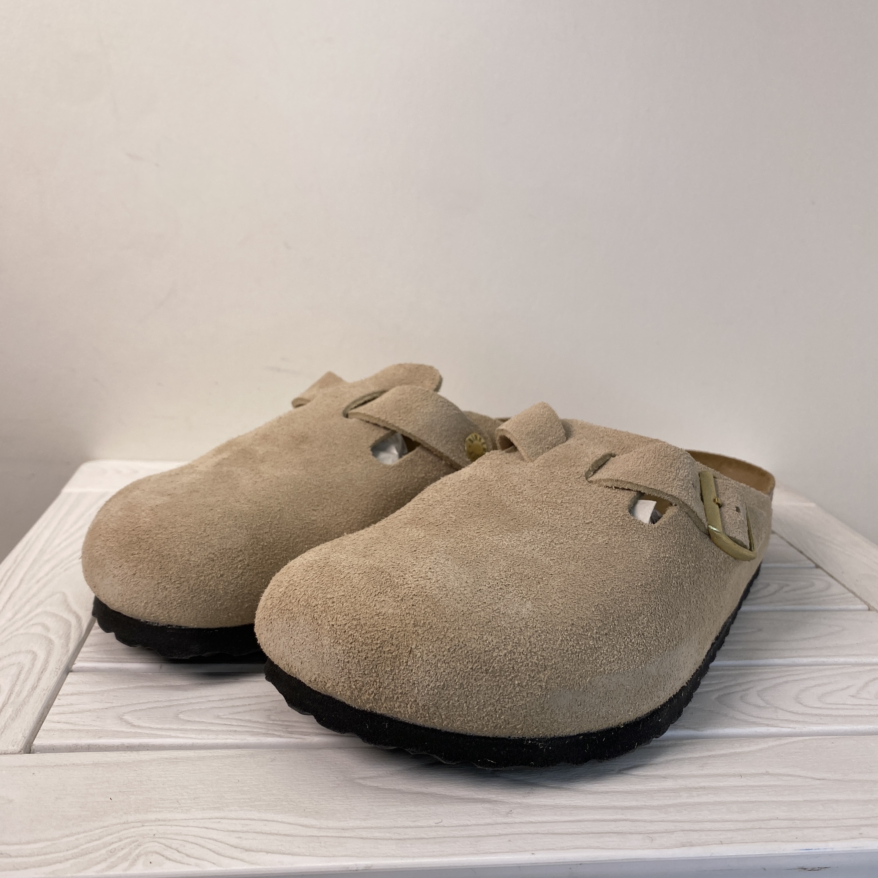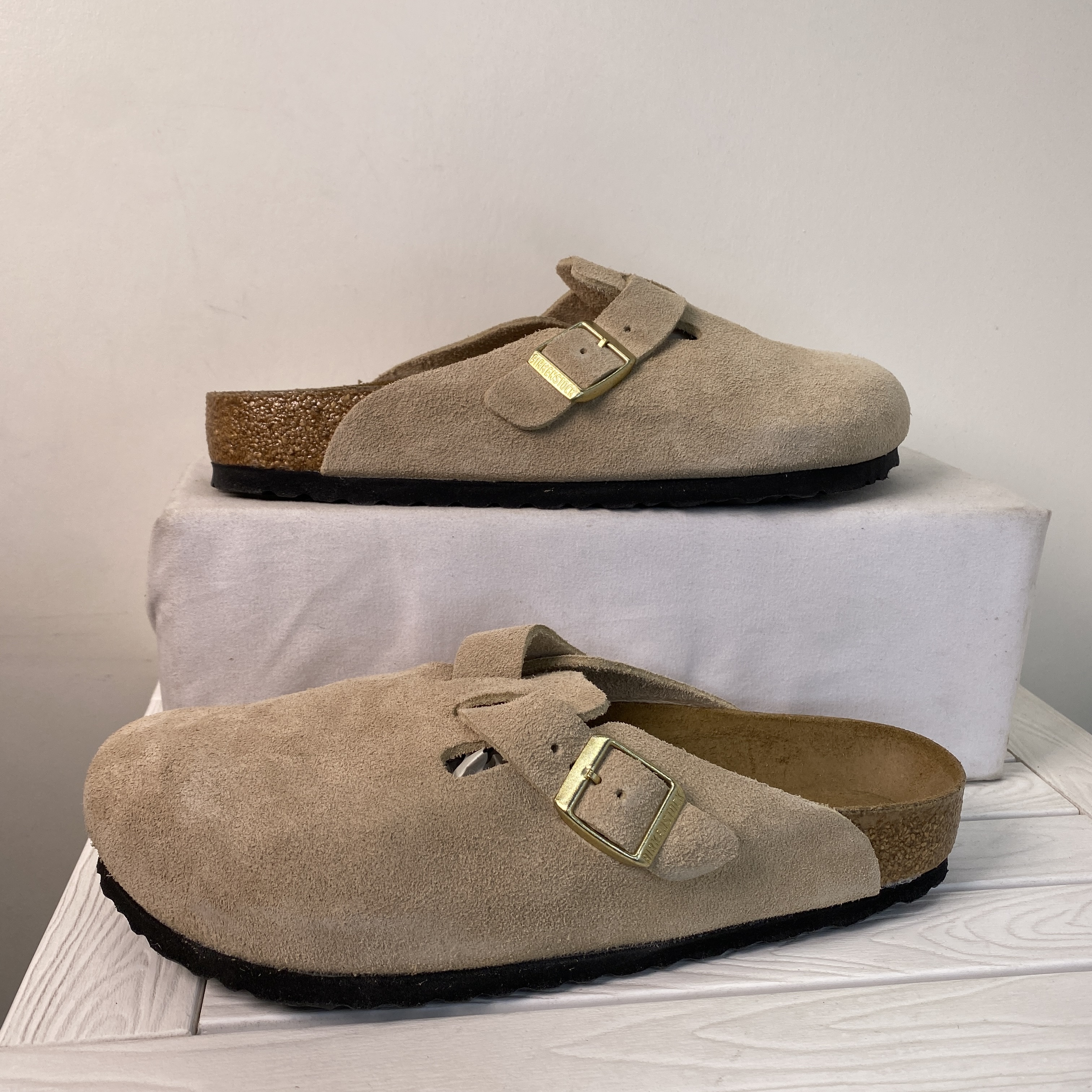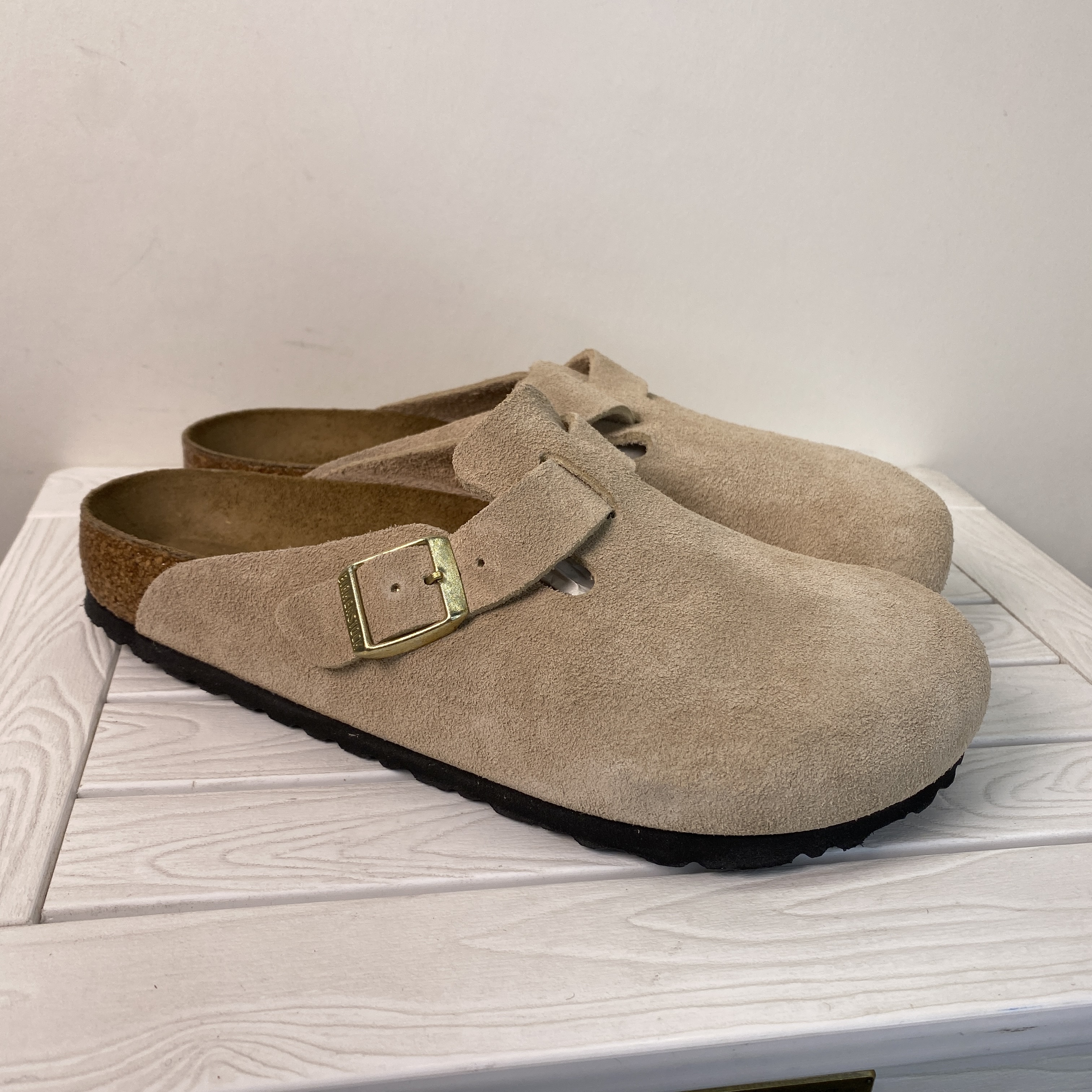 Birkenstock Boston BS Unisex Men Size 7 Women 9 Tan Suede Adjustable Strap Clogs