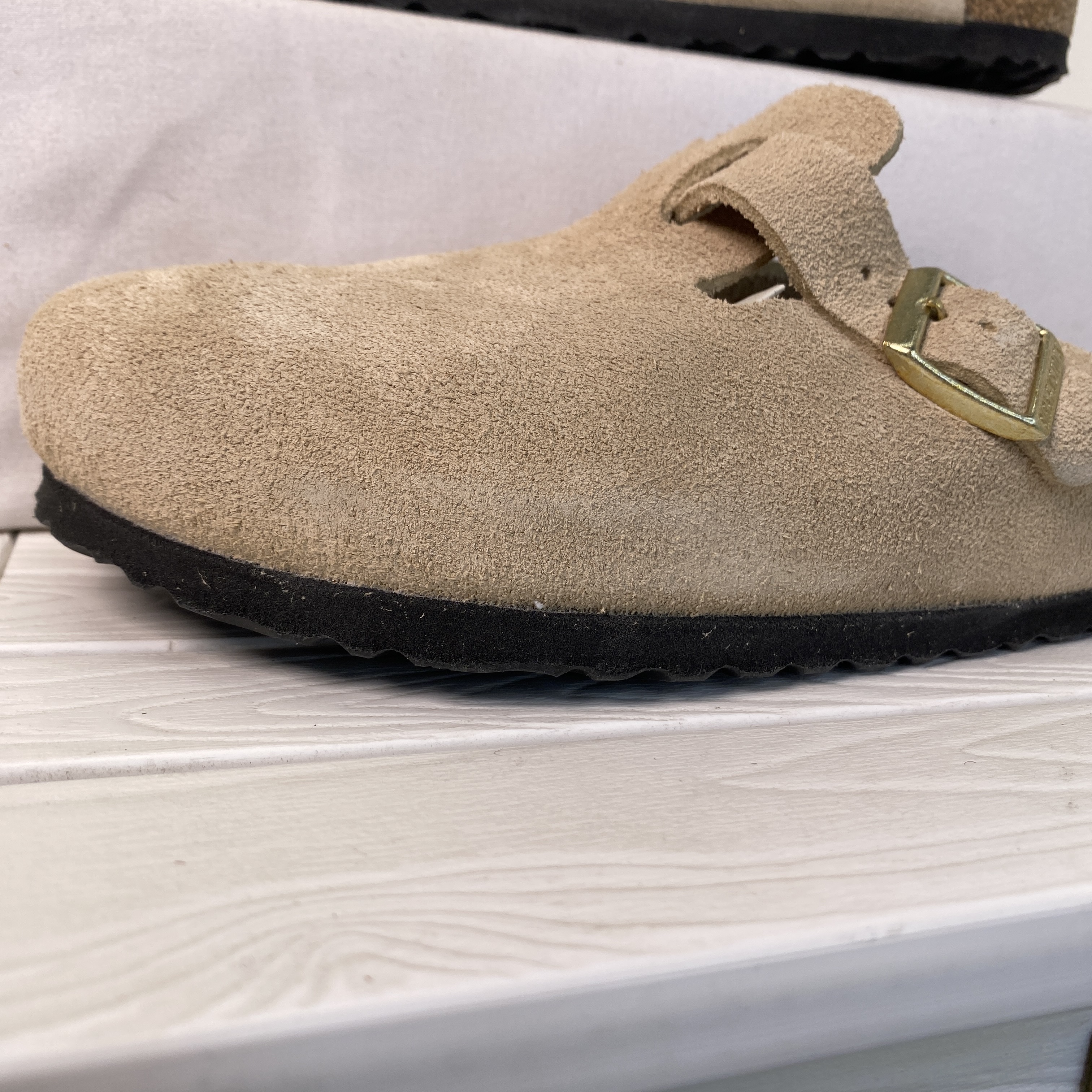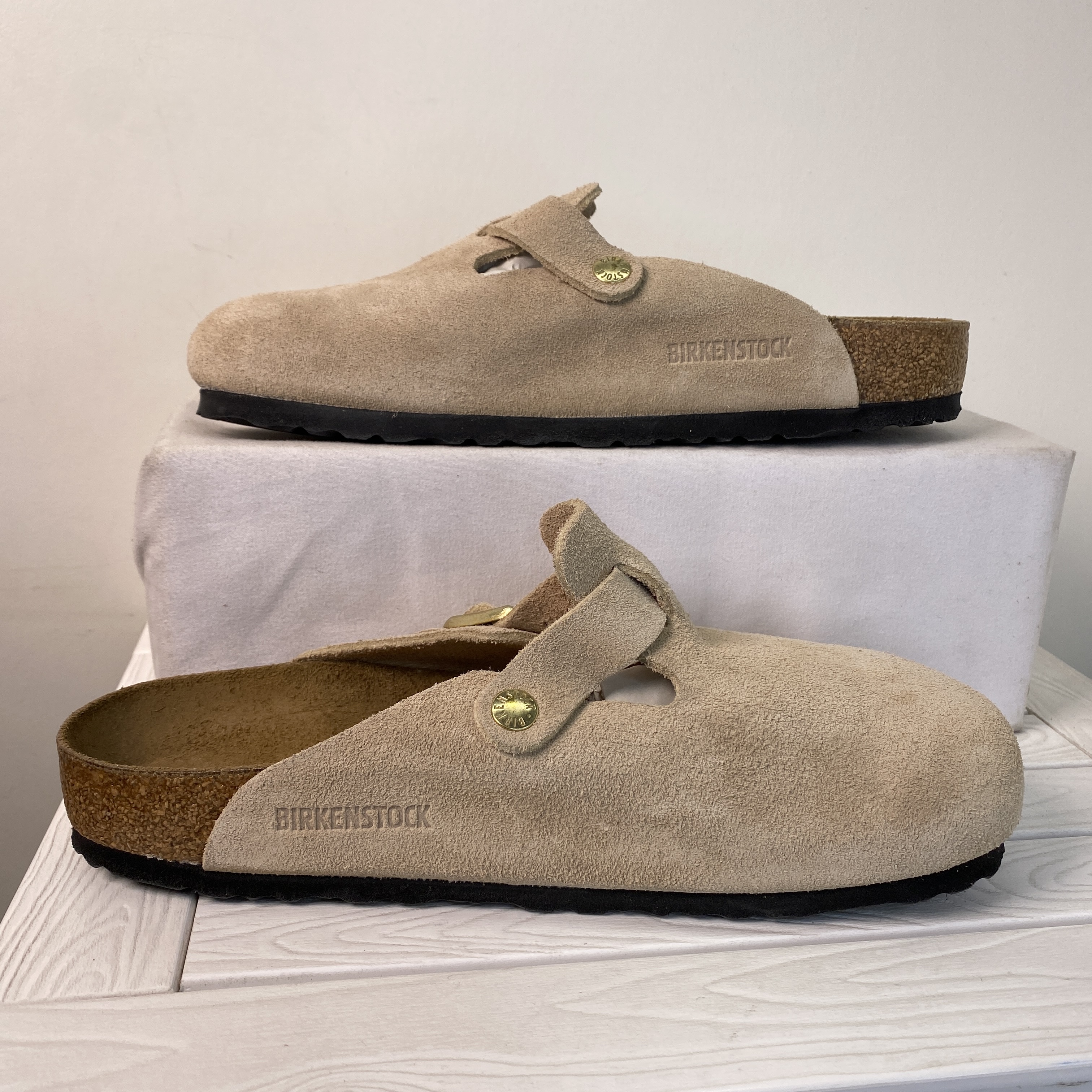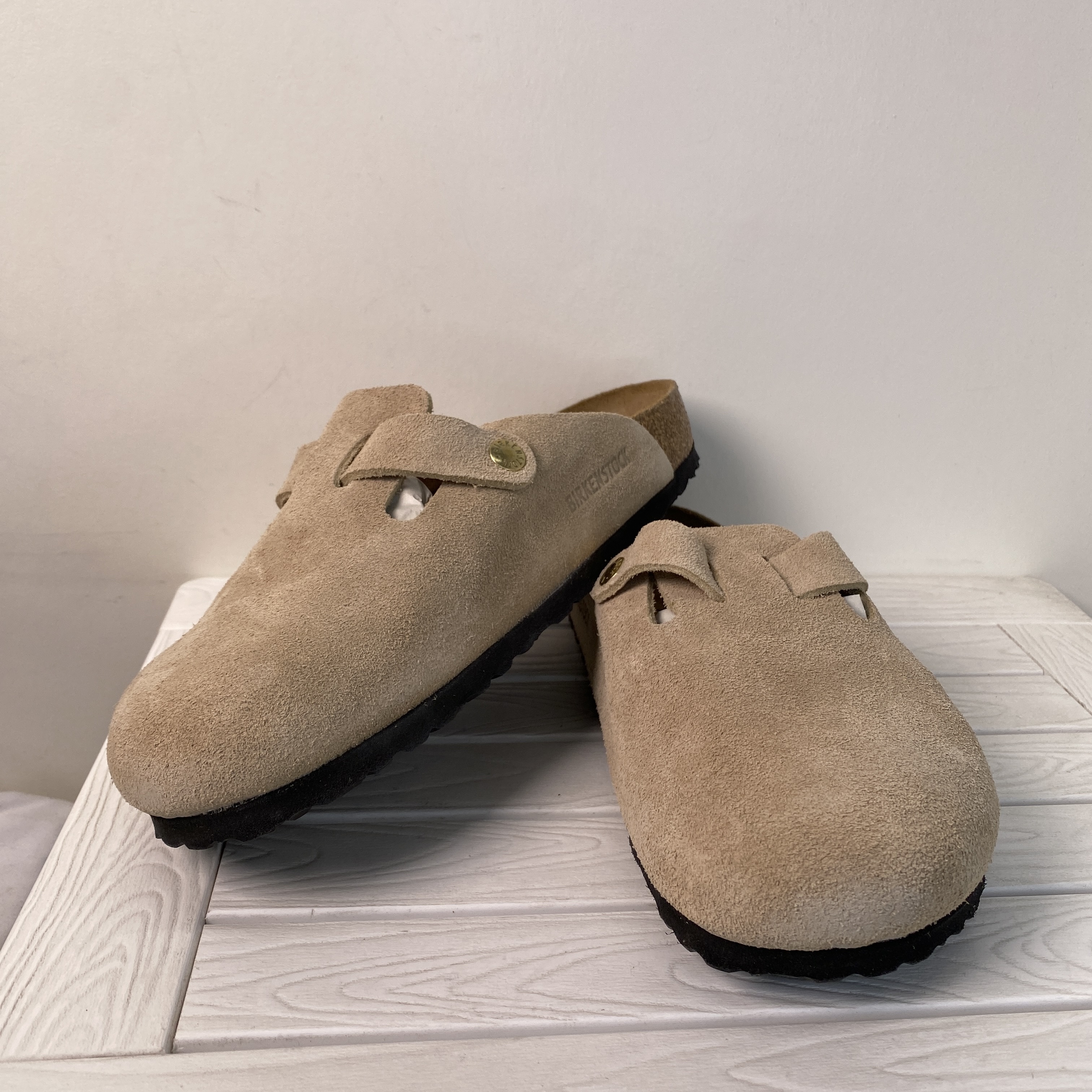 Birkenstock Boston BS Unisex Men Size 7 Women 9 Tan Suede Adjustable Strap Clogs