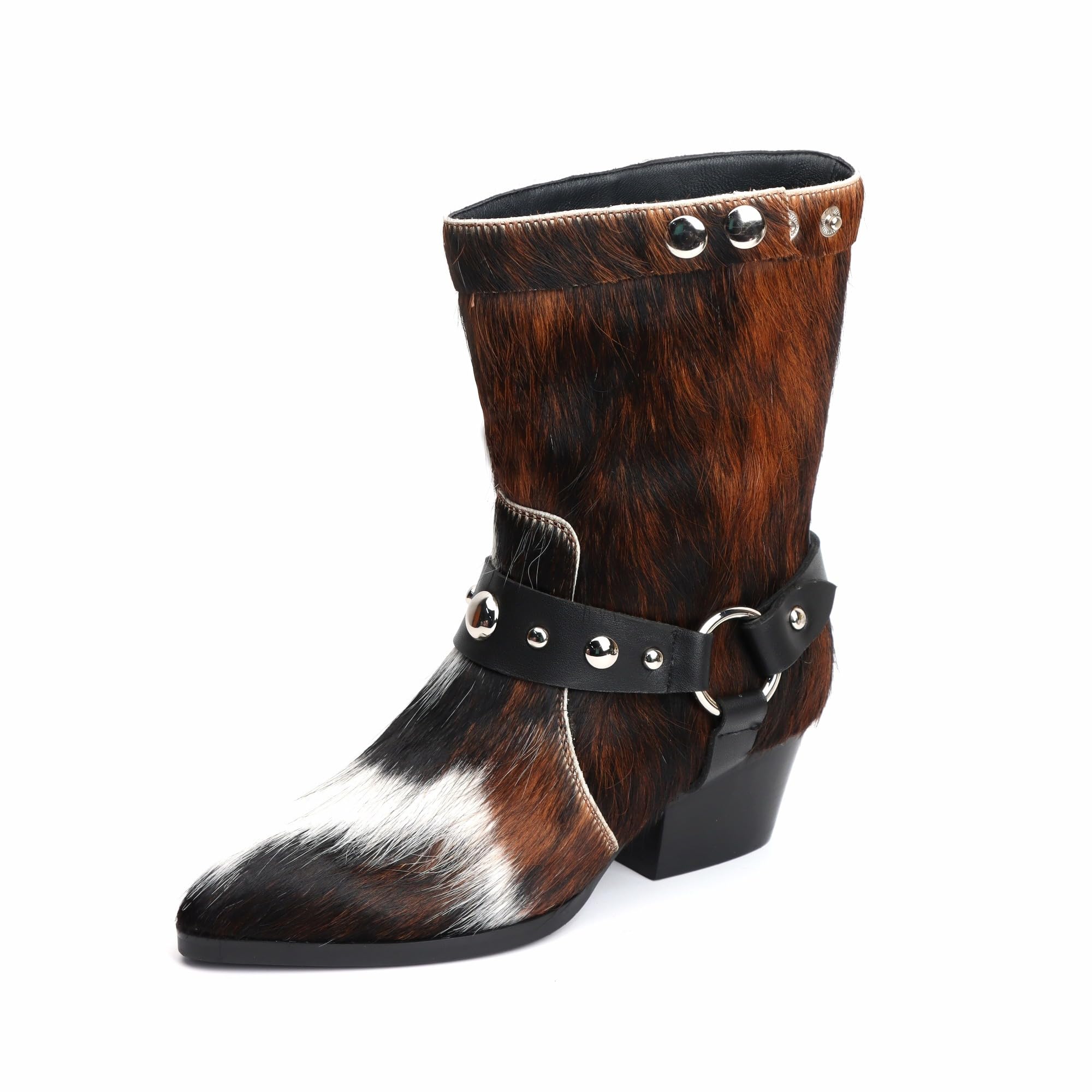 • Unique Calf Hair Leather – Crafted from genuine tricolor calf hair and cowhide; every pair has its own natural pattern, making your boots truly one-of-a-kind.