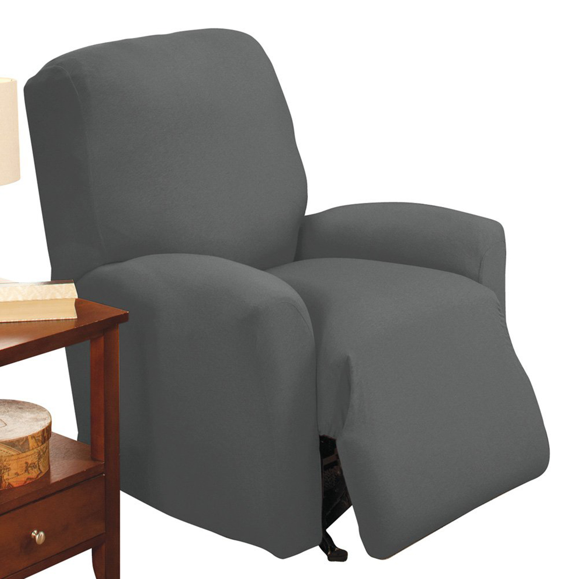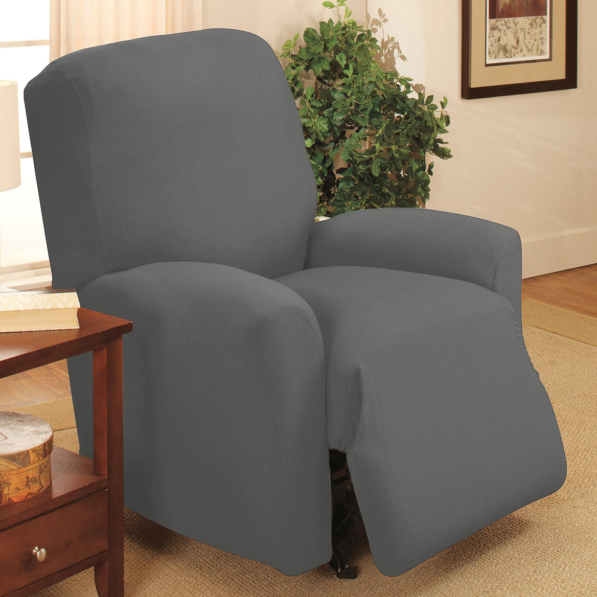 Collections Etc Jersey Stretch Slipcover Furniture Protector, Grey, Recliner