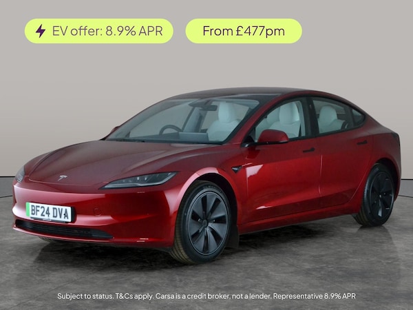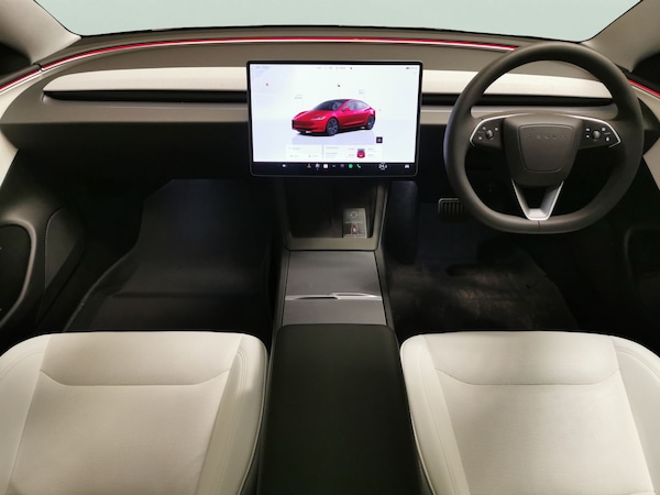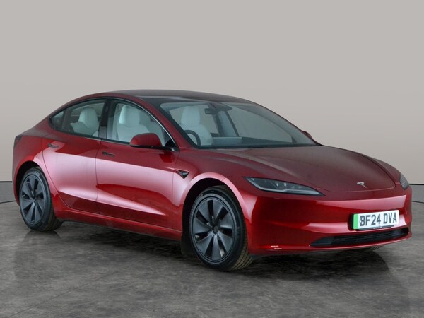 Experience the future of driving with this stunning red Tesla Model 3. Glide along in comfort with a panoramic roof, premium heated seats, and a heated steering wheel. Enjoy effortless journeys thanks to adaptive cruise control, active lane assist, and park assist. Stay seamlessly connected with built-in wifi and Sat Nav, and enter with ease via keyless entry. Safety is top-notch with blind spot assist, LED headlights, and a reversing camera. The ideal electric saloon for modern driving. 1 service recorded, last serviced on 14/03/2026 at 4,546 miles. MOT to 16/05/2027. Visit our website for service history, online valuation, full vehicle specification plus multiple images. This vehicle is VAT qualifying. Any feature/option specified here is from 3rd party data. We cannot guarantee the accuracy of any specification supplied by a 3rd party. We recommend that you physically check the specification of the vehicle on site prior to purchase. This information does not form part of the buying contract. Terms & Conditions apply. We have over 2,000 cars available from our 10 national branches, check our website to see all our stock. Our Trustpilot rating is 4.4/5 with over 9,000 reviews.