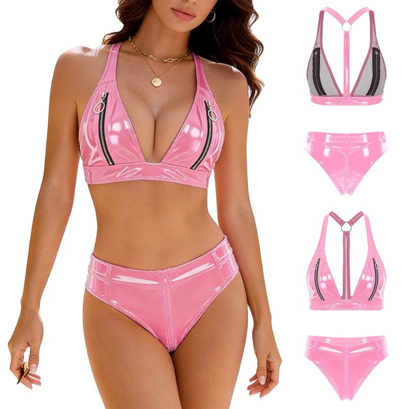 The Y-back of the bra and low-rise zipper crotch briefs create a bold and alluring silhouette, perfect for those who want to make a statement.
