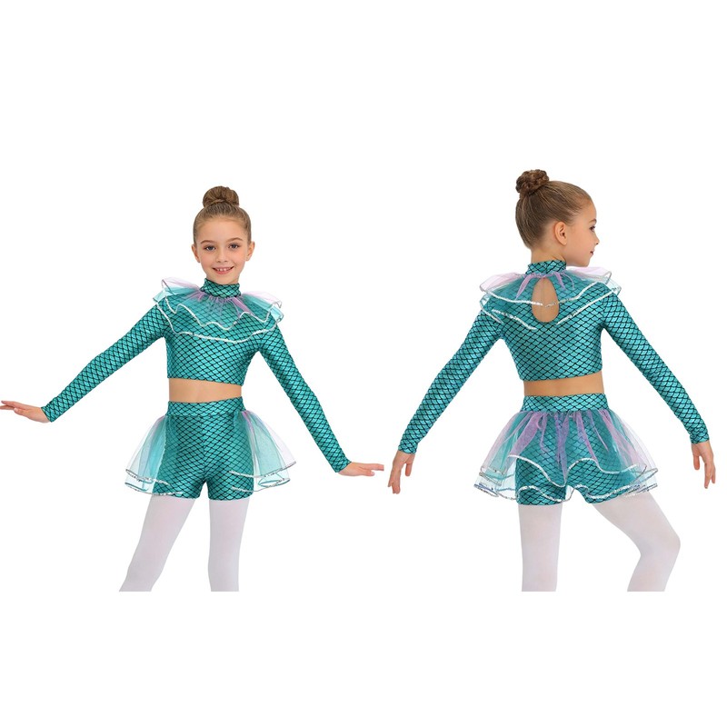 The long-sleeve crop top adds a touch of warmth and style, while the shorts are practical and easy to wear, making it a perfect combination for a mermaid costume.