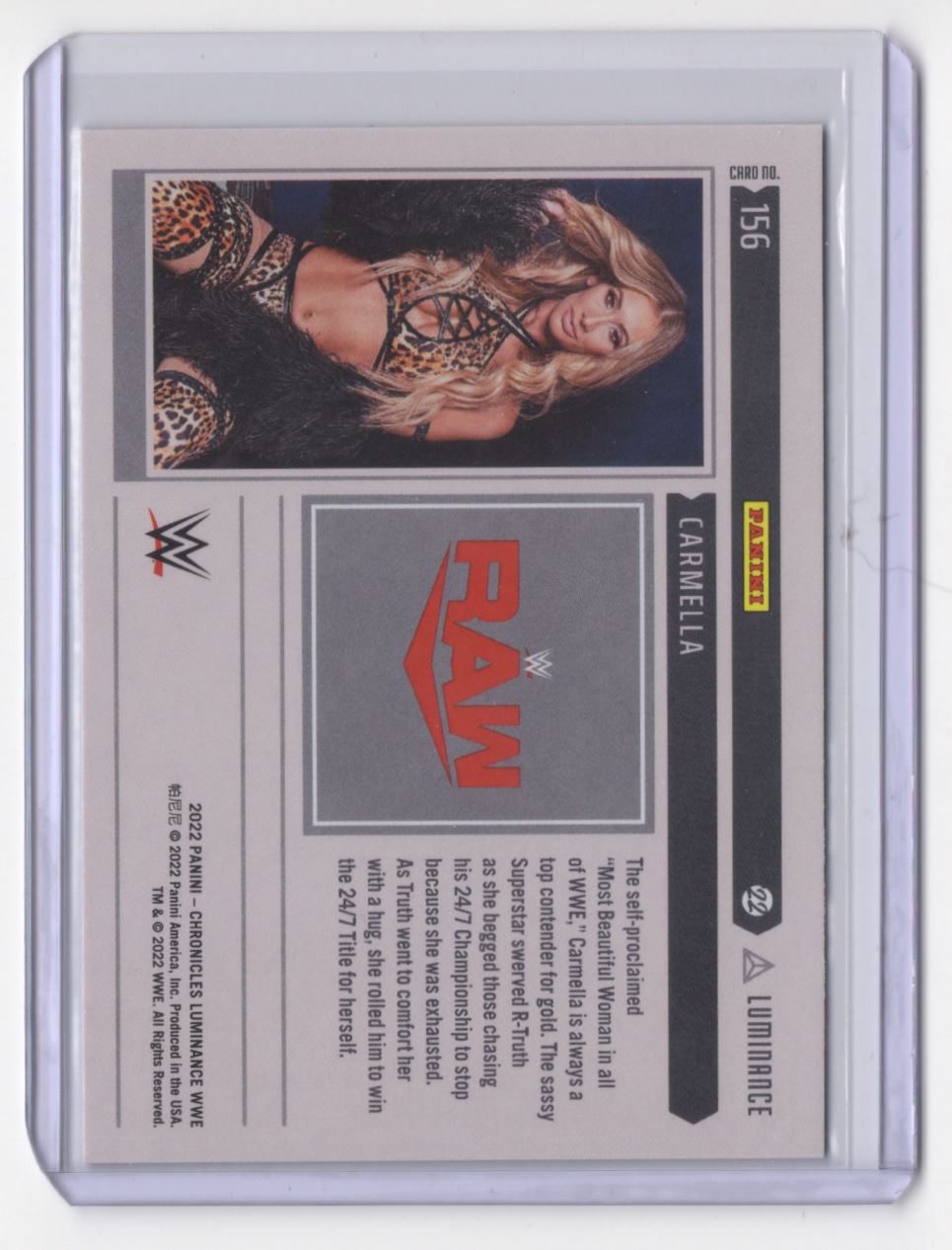 | 2022 Panini Chronicles WWE Luminance Carmella #156 | ||||||||||||||