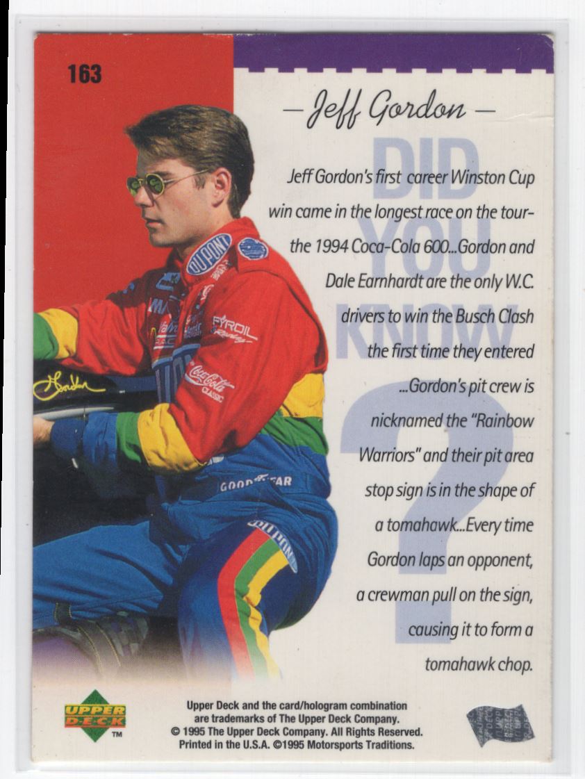 1995 Upper Deck Did You Know Jeff Gordon Hendrick Motorsports #163