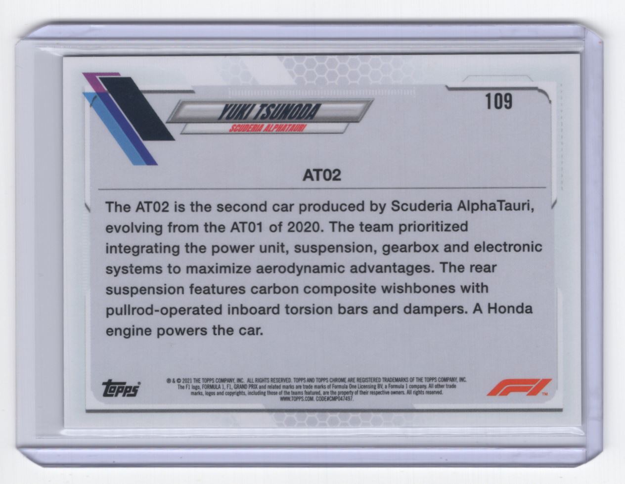 2021 Topps Chrome Formula 1 * Yuki Tsunoda Rookie Scuderia AlphaTauri #109