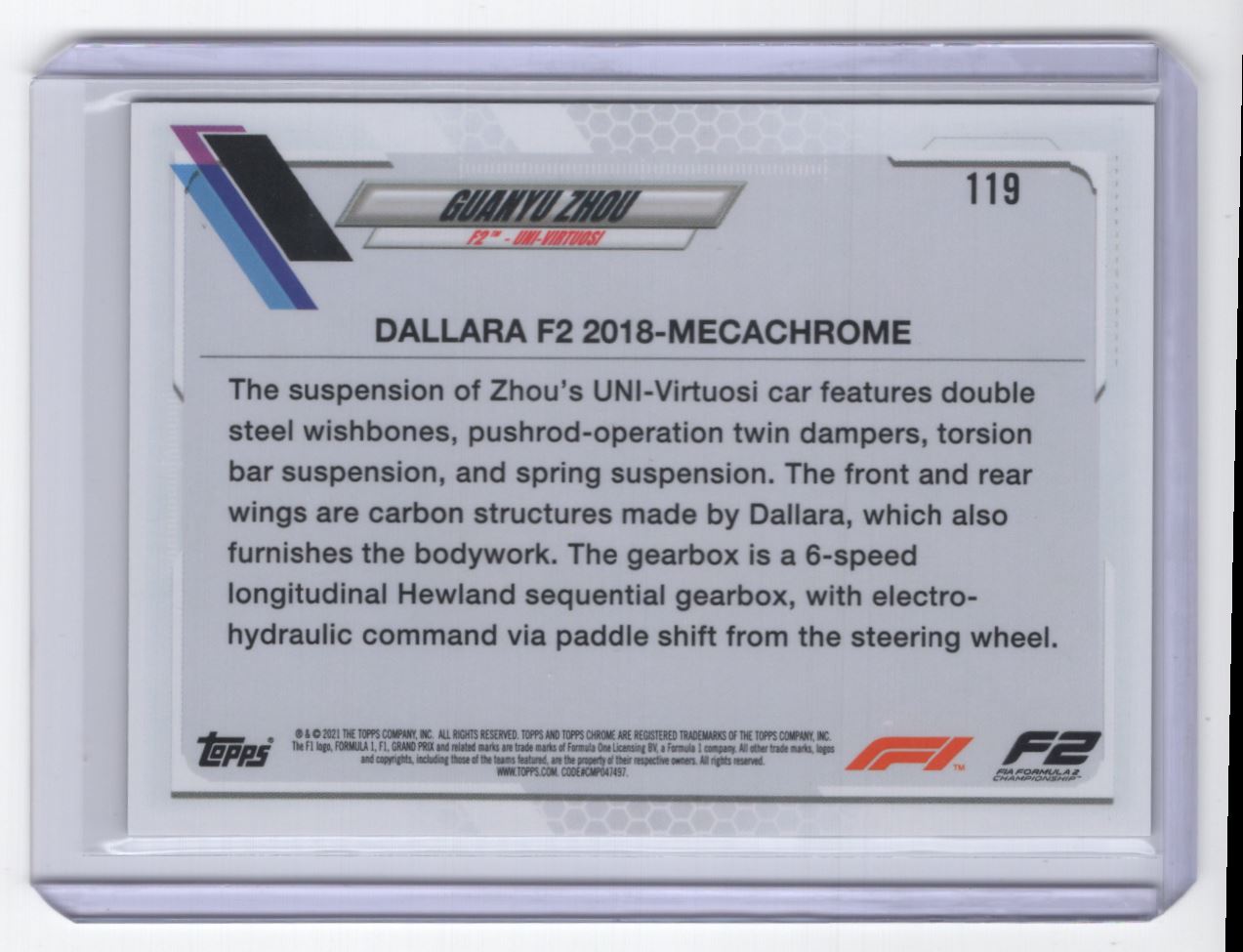 2021 Topps Chrome Formula 1 * Guanyu Zhou UNI-Virtuosi Racing F2 #119