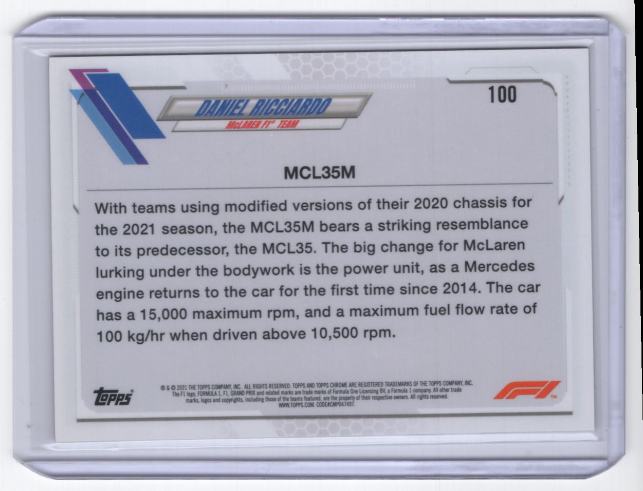 2021 Topps Chrome Formula 1 > Daniel Ricciardo McLaren F1 Team #100