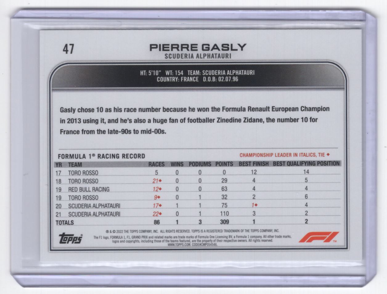 2022 Topps Formula 1 Pierre Gasly Scuderia AlphaTauri #47