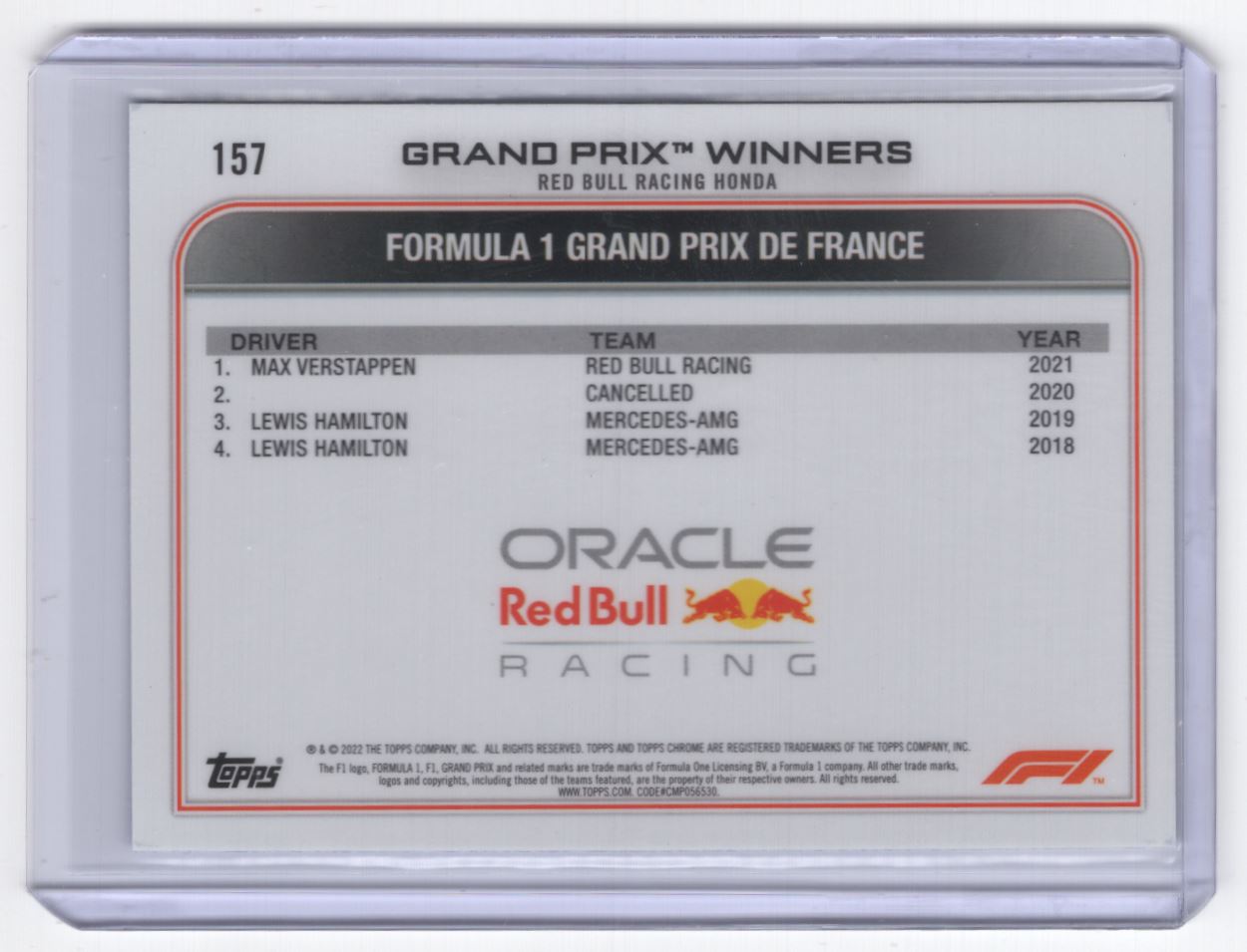 2022 + Max Verstappen Red Bull Racing Honda #157