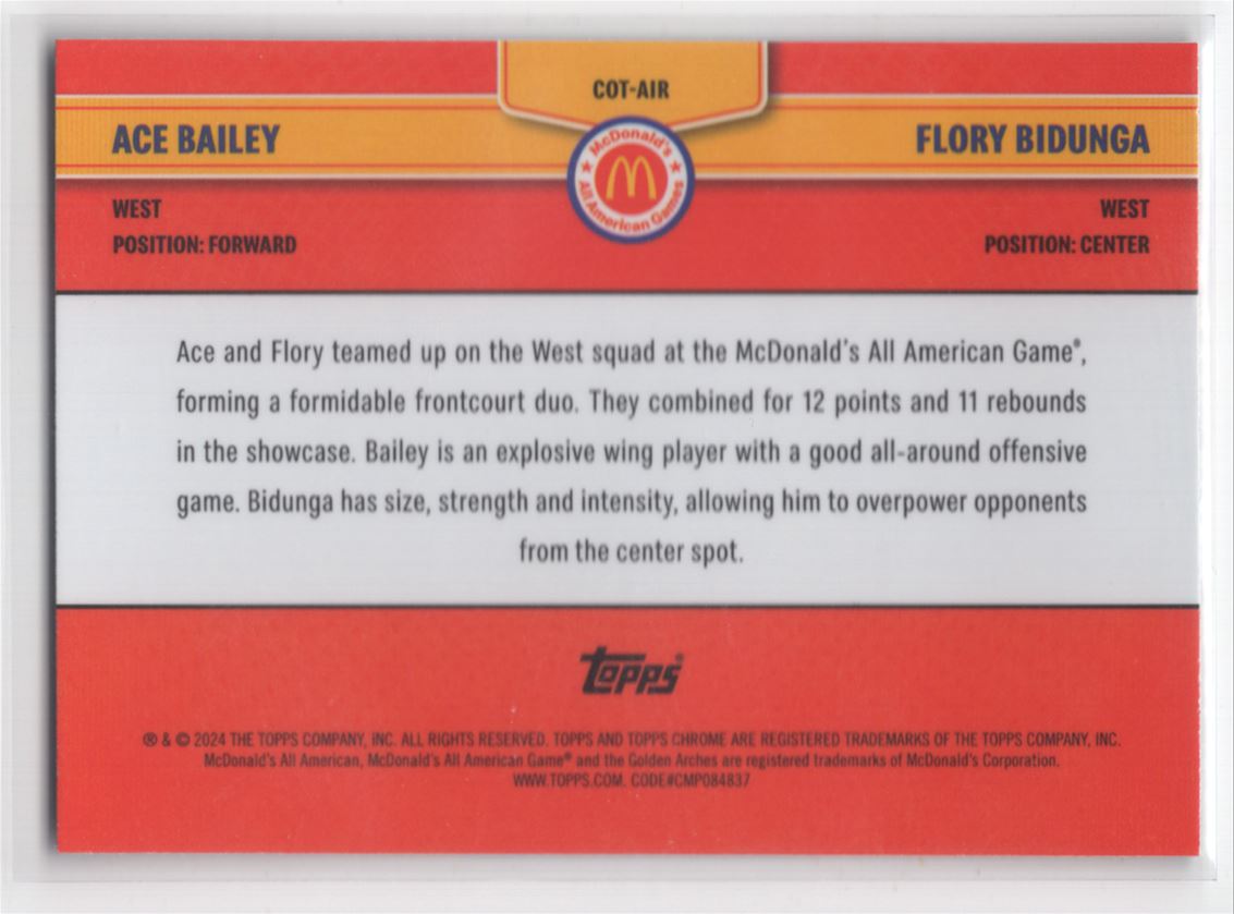 #COT-AIR 2024-25 Topps Chrome McDonad's Blue Raywave Combo Talents Ace Bailey /