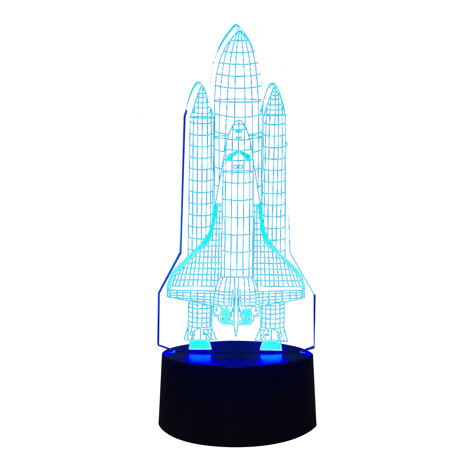 3D Space Rocket Night Light 7-Color Changing LED Table Lamp W/ Remote Control H