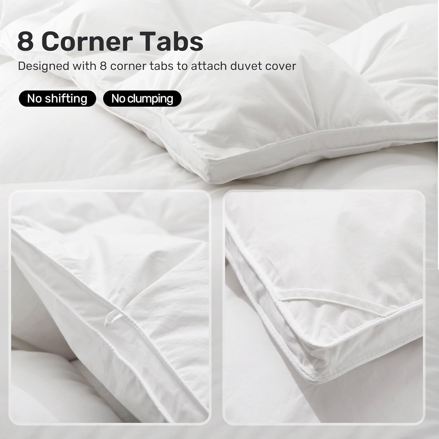 3D BAFFLE BOX DESIGN: 3D Baffle Box Construct with superior stitching keeps the feather down fiber evenly distributed,no shifting or clumping. The filling can truly expand and create maximum loft,make the forter cloud-like fluffy,its breathable cotton cover and goose feather filling make it for year-round use.
