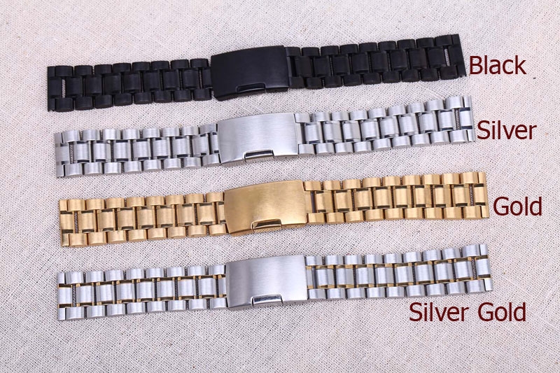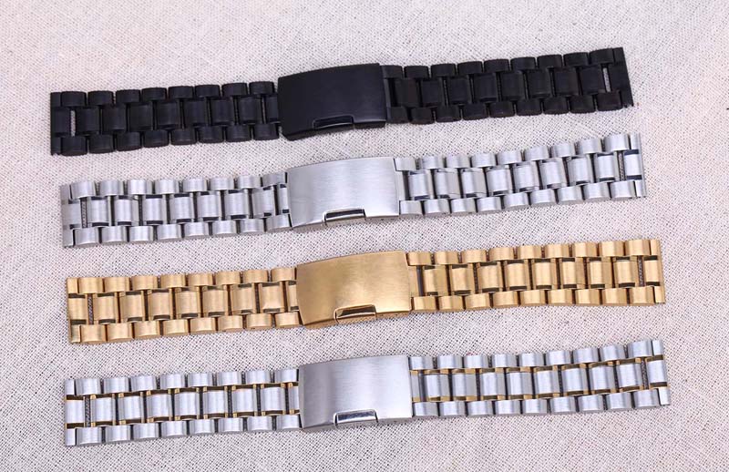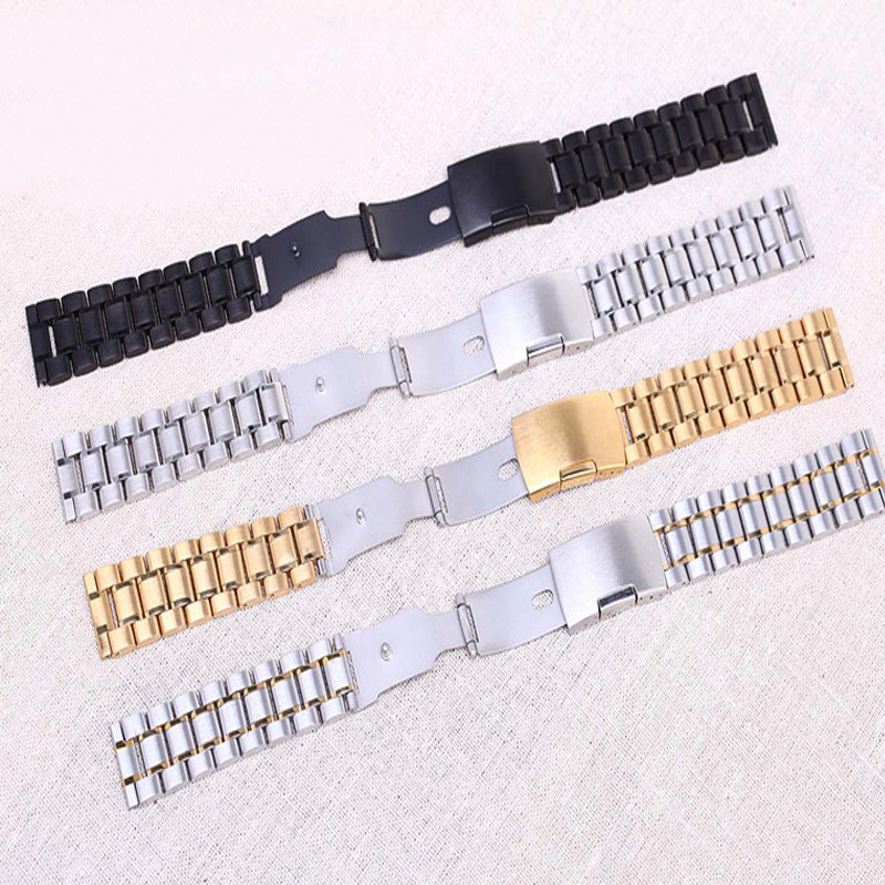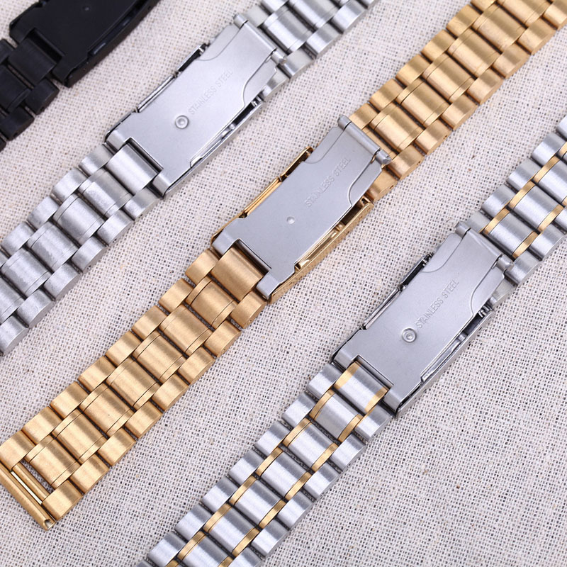Replacement Solid 5Rows Watch Band 14mm 16 18 19mm 20 21mm 22 24 26mm Stainless Steel Strap Metal Wrist Bracelet with Pins
