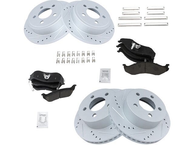 (1) Front Ceramic Brake Pad Set; (1) Rear Ceramic Brake Pad Set; (1) Front Premium G-Coated Performance Brake Rotor Set; (1) Rear Premium G-Coated Performance Brake Rotor Set