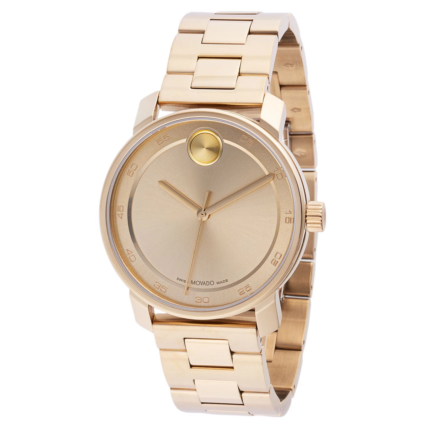 The Movado Bold Access Men’s Gold Tone Watch – 3600912 delivers a striking monochromatic design that blends modern style with timeless elegance. Its gold dial is complemented by matching gold-tone hands and Arabic numeral hour markers, creating a clean and sophisticated look. The bold yet minimal aesthetic reflects Movado’s signature design language, making it a versatile piece for both everyday wear and special occasions.