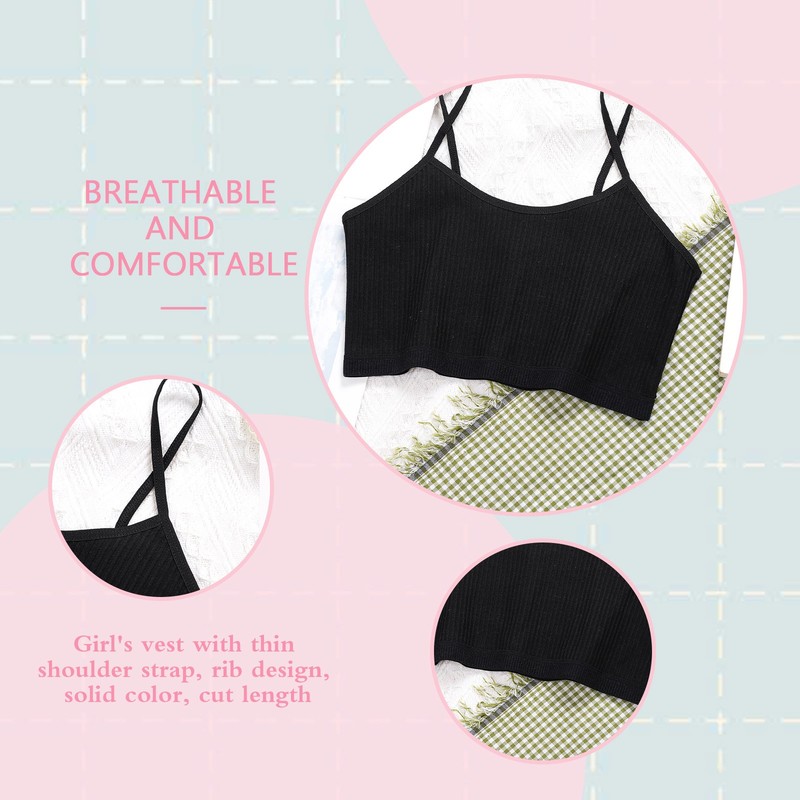 Spaghetti straps vest for kids girls, ribbed design, solid color, cropped length.