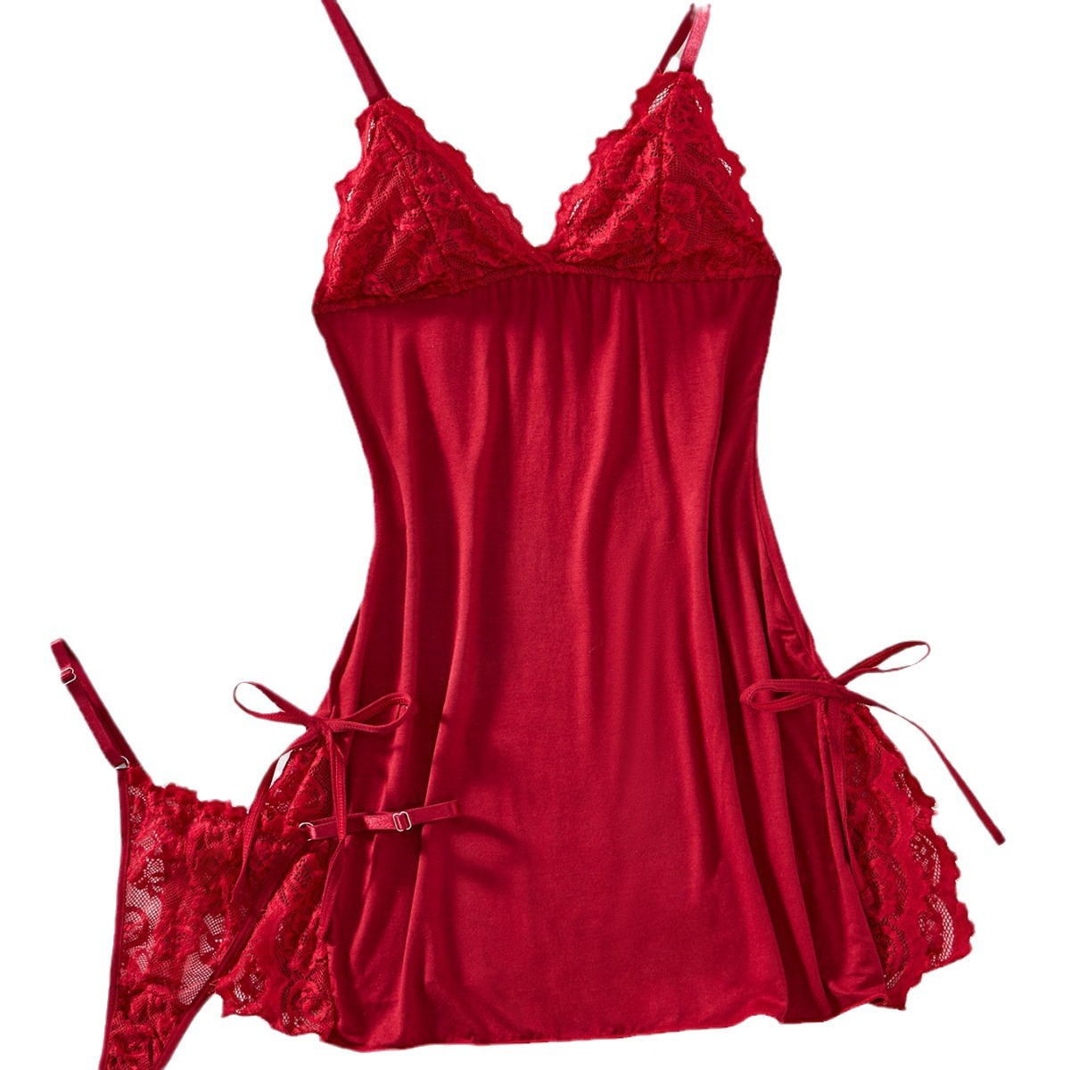 Elegant Design: This 2-piece set includes a lace trim side slit modal cami sleep dress and a matching thong. Perfect for cozy nights, it offers both style and comfort. ๐