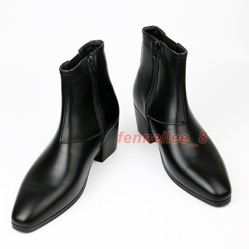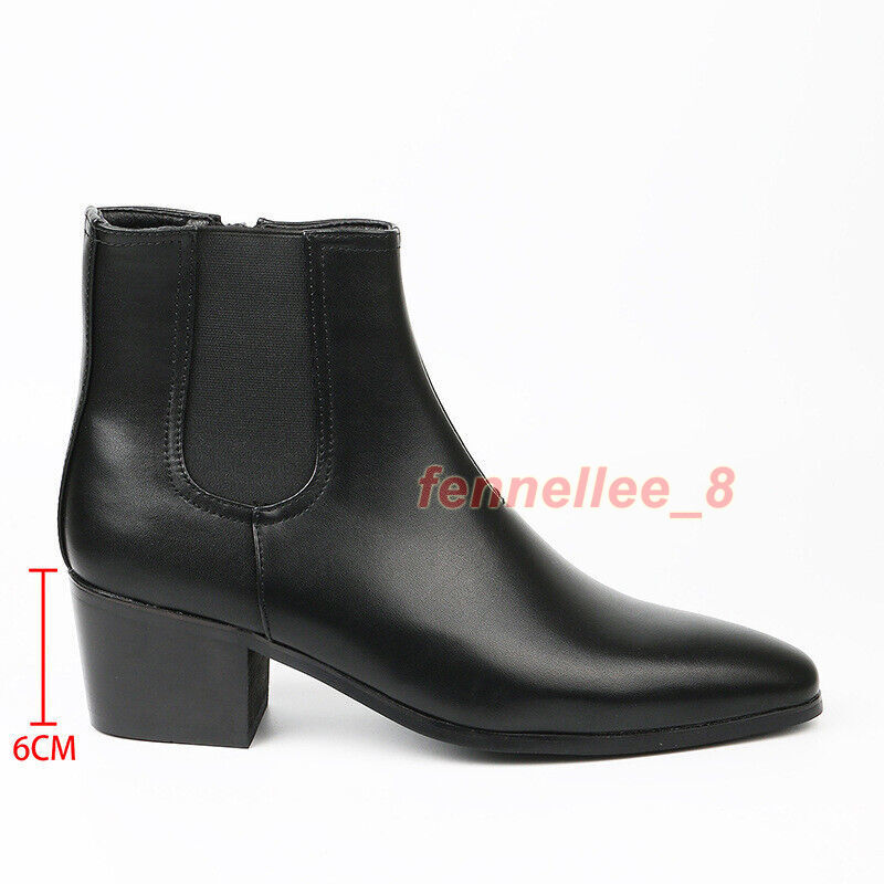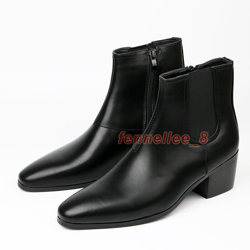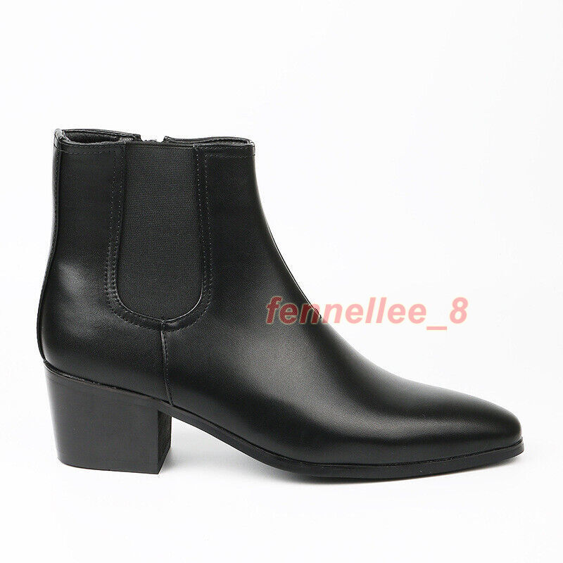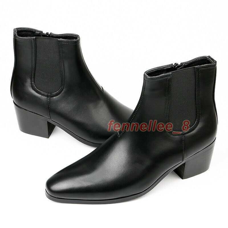 Men's Pointed Toe Chelsea Boots Cuban Heels High Top Formal Dress Ankle Boots