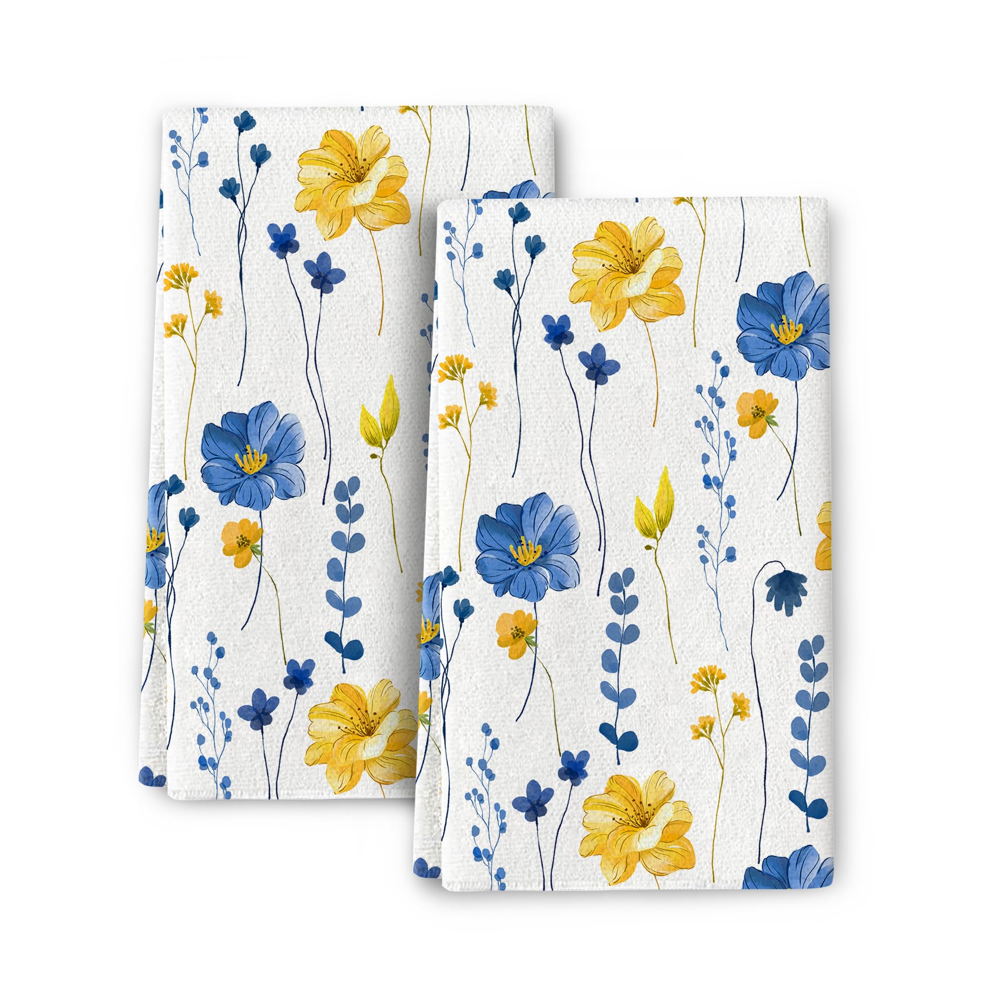 Bapcoku Blue Yellow Flower Kitchen Dish Towels Set of 16x24 inch,