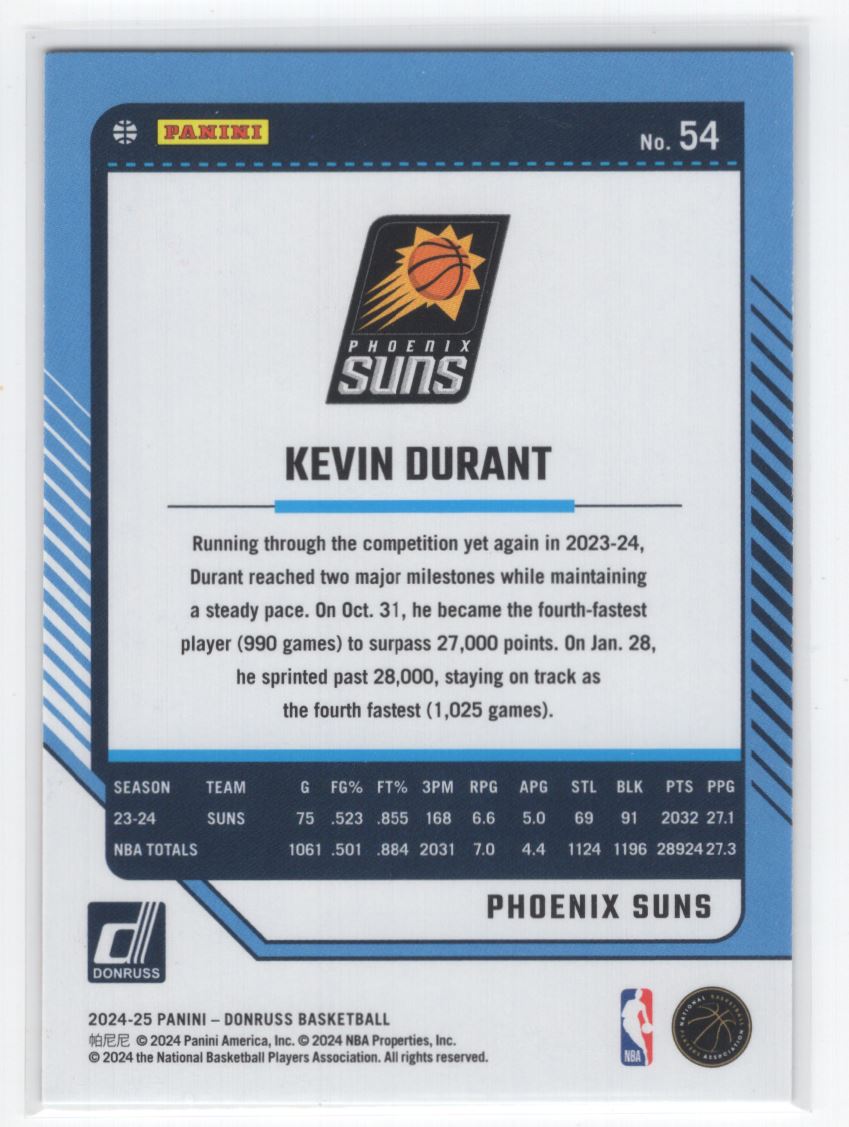 #54 2024-25 Donruss Holo Green Laser Kevin Durant Phoenix Suns