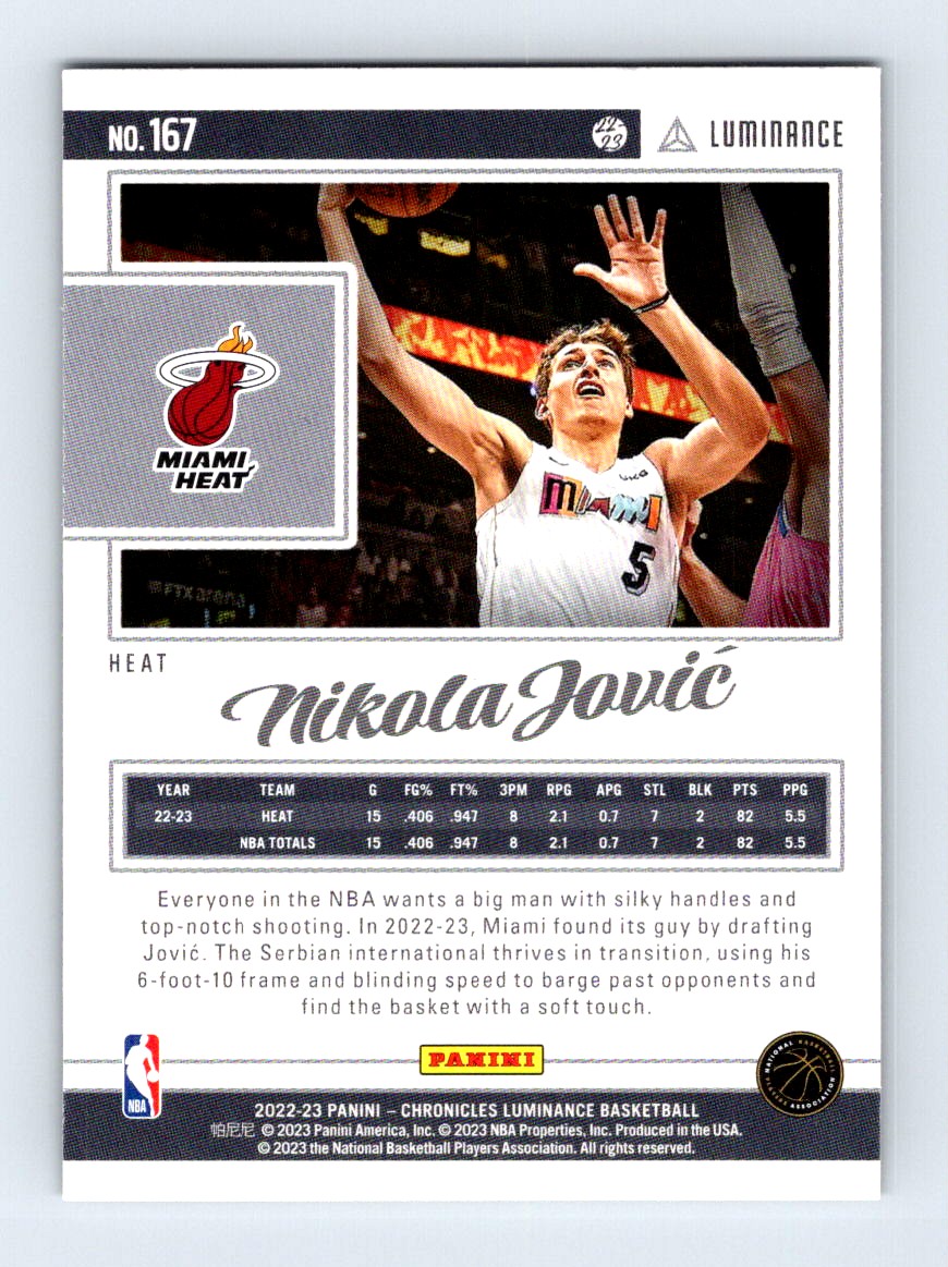 #167 2022-23 Chronicles Luminance Base ~ Nikola Jovic RC Heat