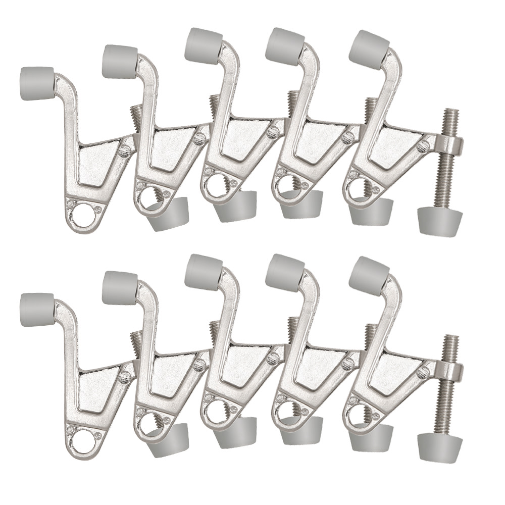Item DescriptionThe Design House jumbo hinge pin heavy duty door stoppers come in a 10 pack for your convenience. These door stops are made of zinc alloy and are designed to protect your walls and doors from damage and eliminate the slamming door sound. Measuring 2-1/5", this door stop will accommodate 1/4" to 5/16" diameter hinge pins and adjusts from 85 degrees to 125 degrees to suit your specific needs. Remove the risk of punctured walls and splintered wood caused by slamming doors. Designed and manufactured by Design House, the trusted source for quality lighting, hardware, plumbing, kitchen, and bath products for every taste and budget.