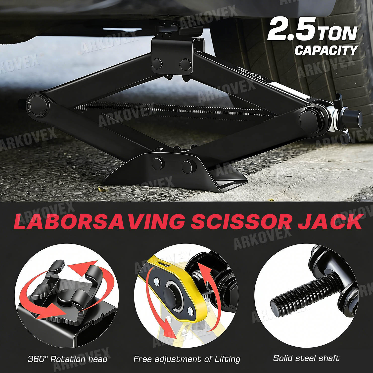 HEAVY-DUTY CAPACITY: Rated for a maximum load of 2.5 Tons (5500 lbs). Designed to safely lift most passenger vehicles, providing reliable support for emergency tire changes and maintenance.