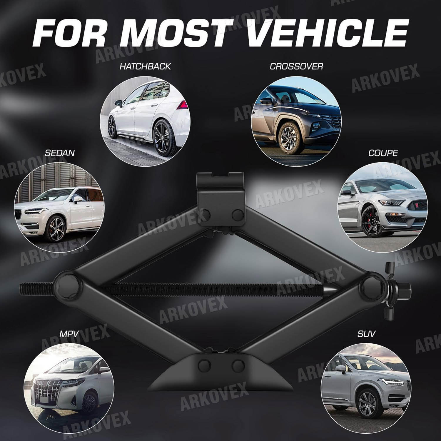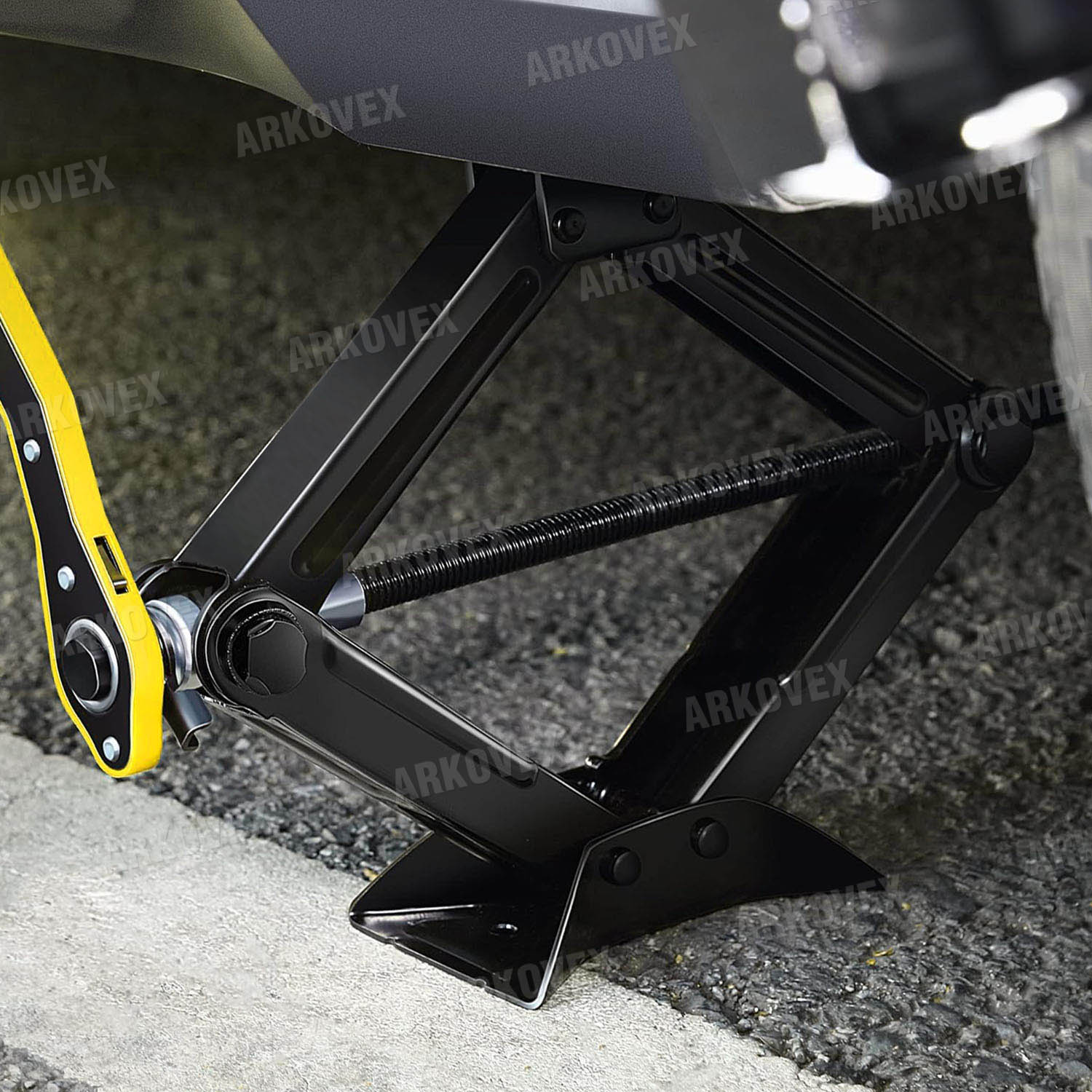 COMPLETE EMERGENCY KIT: Includes 1x Scissor Jack, 1x Ratchet Wrench, 1x Pair of Nitrile Gloves, and 1x Storage Bag. Compact and portable, this all-in-one kit fits easily in your trunk for roadside emergencies.