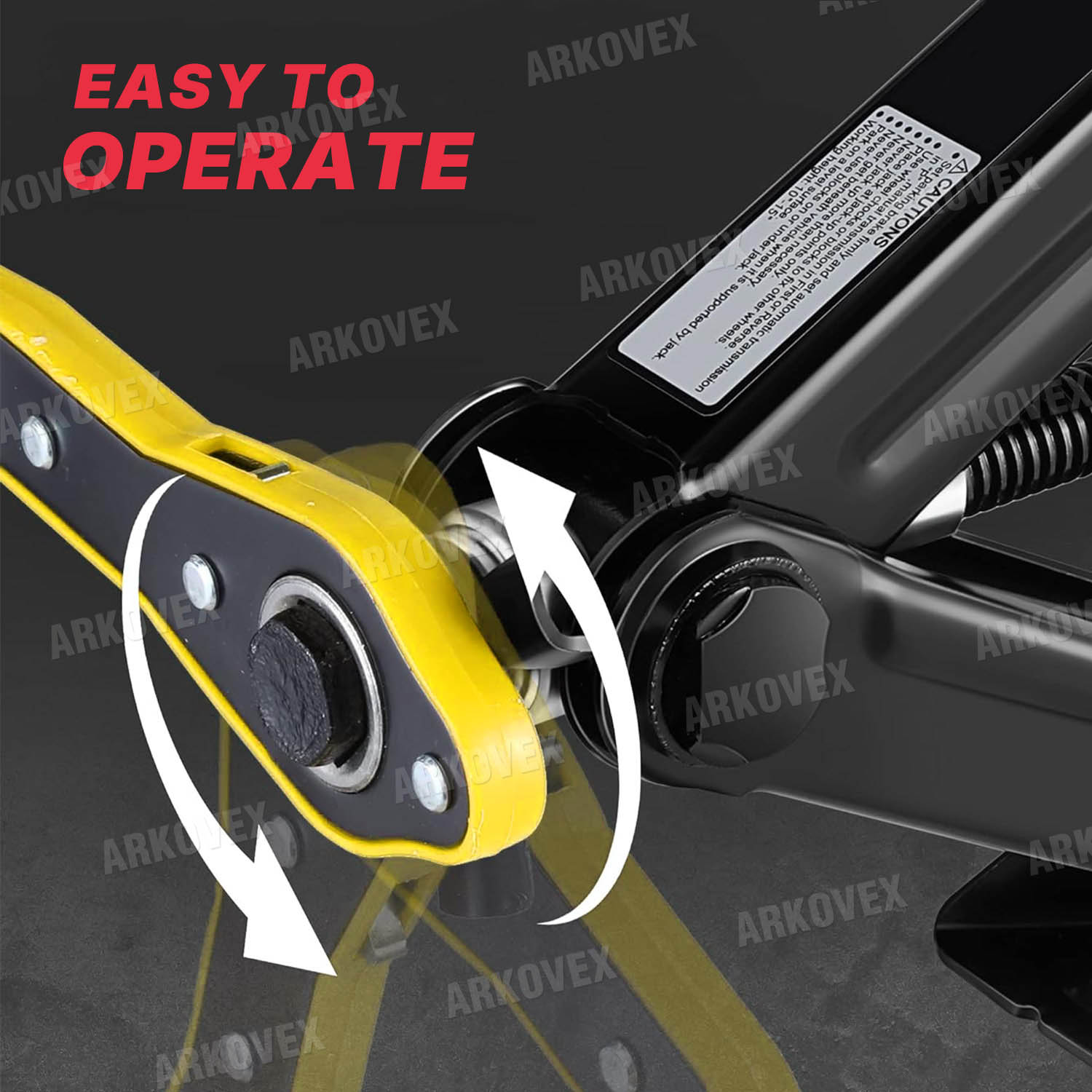 EFFORTLESS OPERATION: Features an upgraded labor-saving ratchet wrench and double-side rotation design. Lifts twice as fast as traditional jacks, allowing you to raise your vehicle quickly with minimal physical effort.