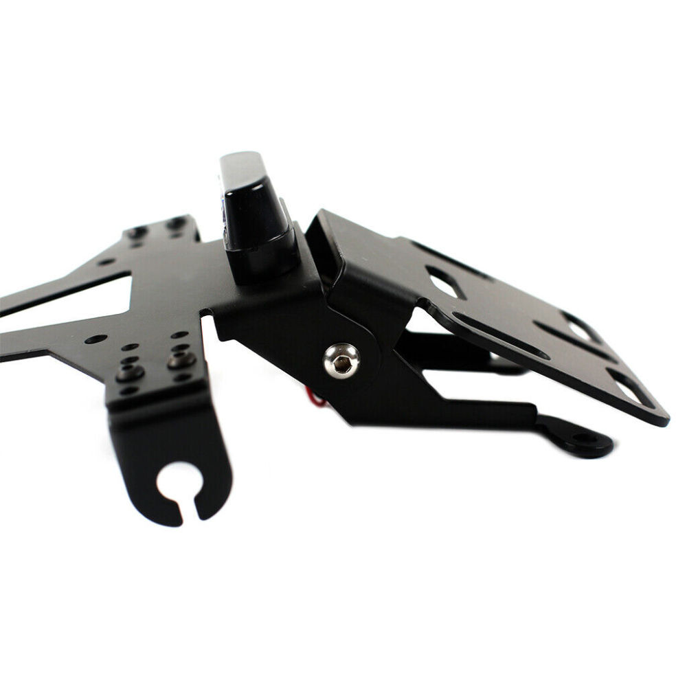 Führen Sie das Kabel, das die Nummernschildbeleuchtung führt, durch das Loch über der Nummernschildhalterung (wie abgebildet) und ziehen Sie dann die hintere Schraube fest, um die Nummernschildbeleuchtung an der Nummernschildhalterung zu befestigen. | Originalschraube aus dem mit Pfeil markierten Loch entfernen, auf den Kennzeichenhalter aufsetzen und Originalschraube festziehen. Nachdem Sie den Kennzeichenhalter befestigt haben, befestigen Sie den Reflektor einfach am Kennzeichenhalter. |