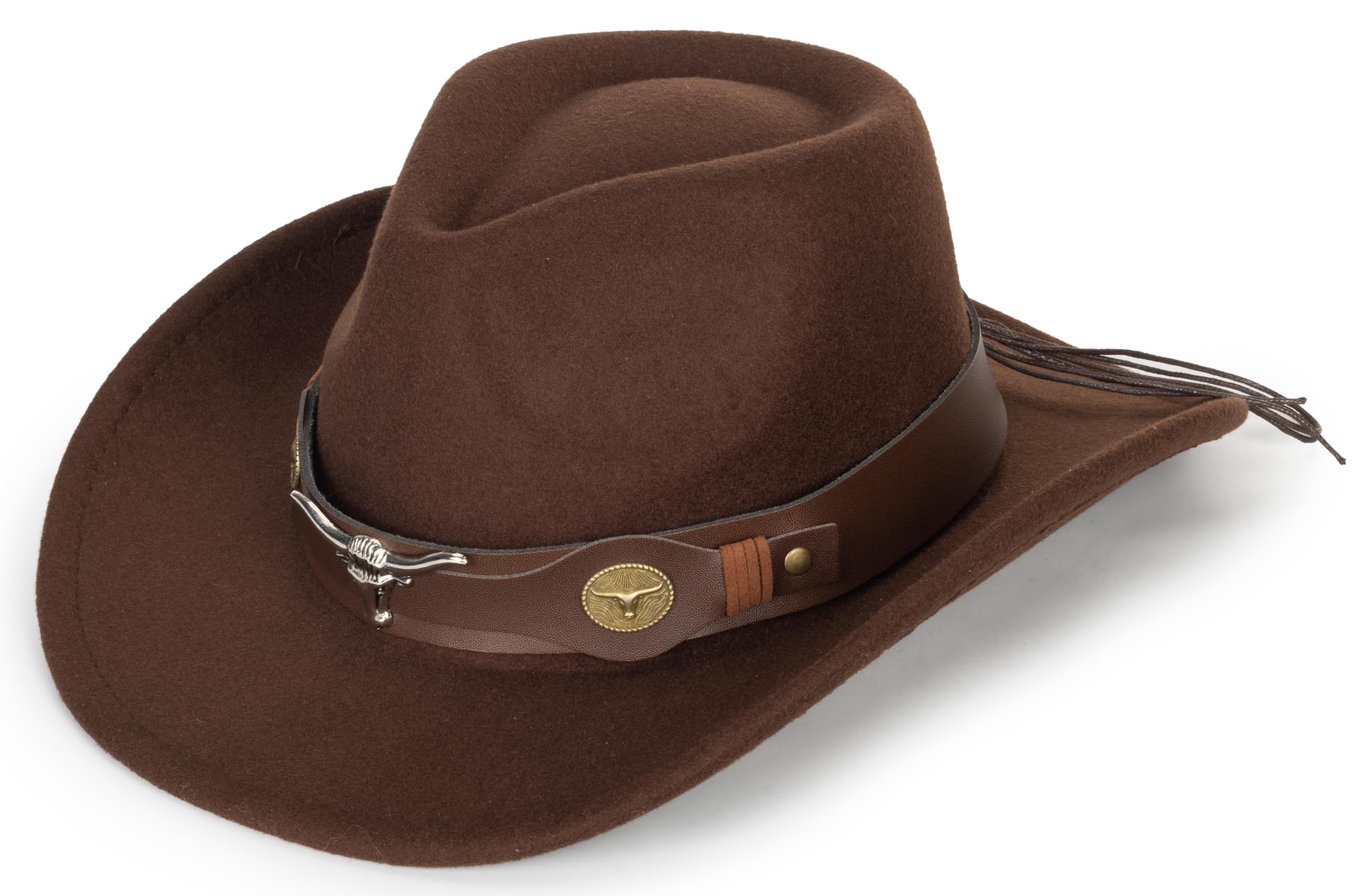 Western Cowboy Cowgirl Hat for Kids Boys Girls Felt Fedora Hats (for Kids 3-6 Years) (US, Age, 4 Years, 8 Years, Coffee with Bull Head Belt)
