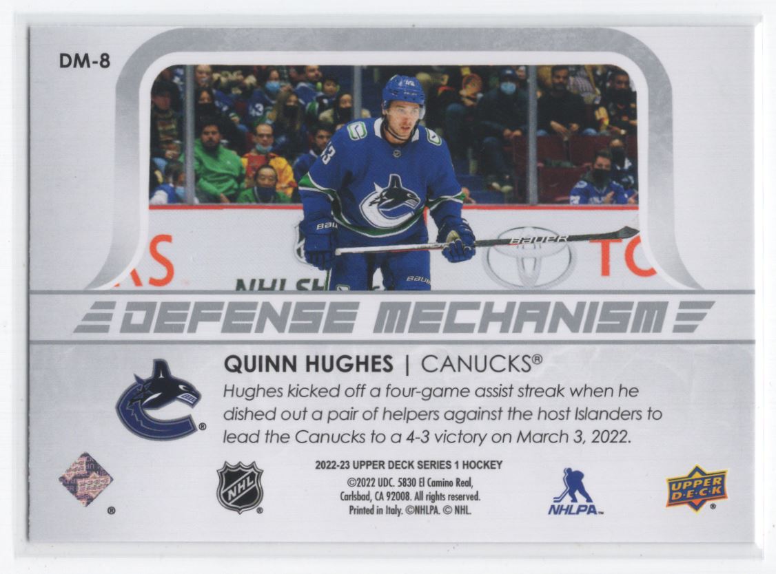 #DM-8 2022-23 Upper Deck Defense Mechanism - Quinn Hughes Vancouver Canucks