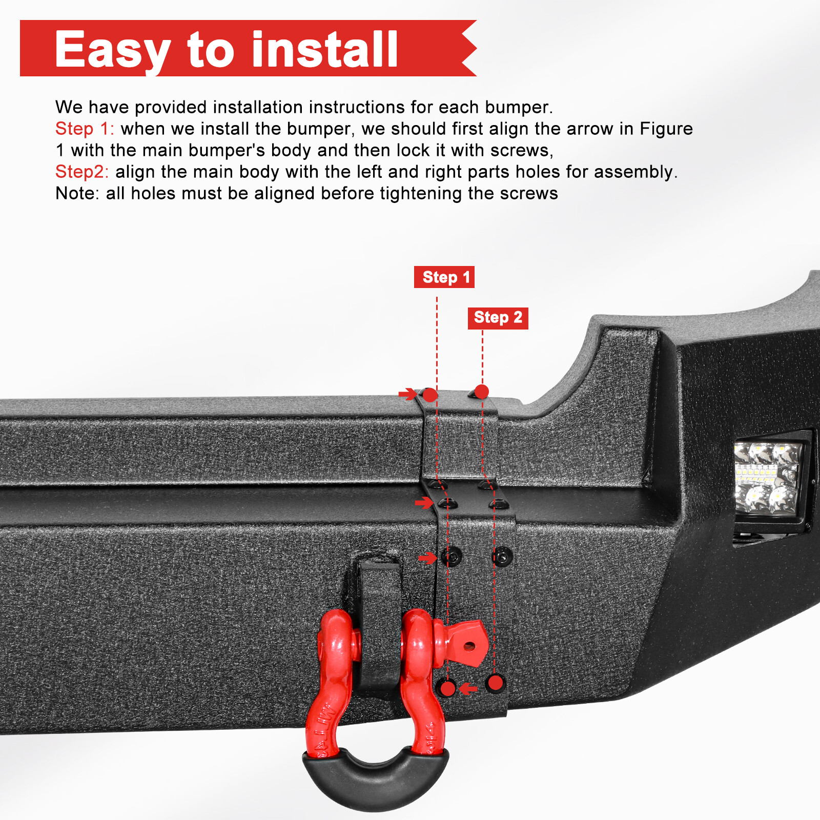 2.Our bumpers are engineered to be a direct bolt-on upgrade using just basic hand tools, so there is no drilling or cutting required,straight forward installation.