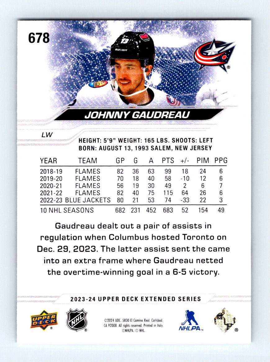 #678 2023-24 Upper Deck { Johnny Gaudreau Blue Jackets