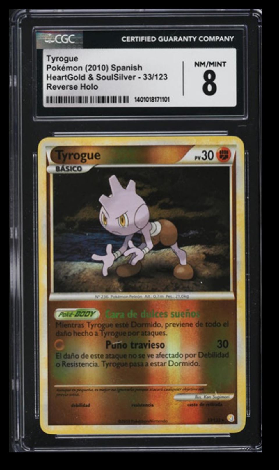 | 2010 Pokemon HeartGold & SoulSilver Tyrogue CGC 8 Spanish #33 Reverse Holo |