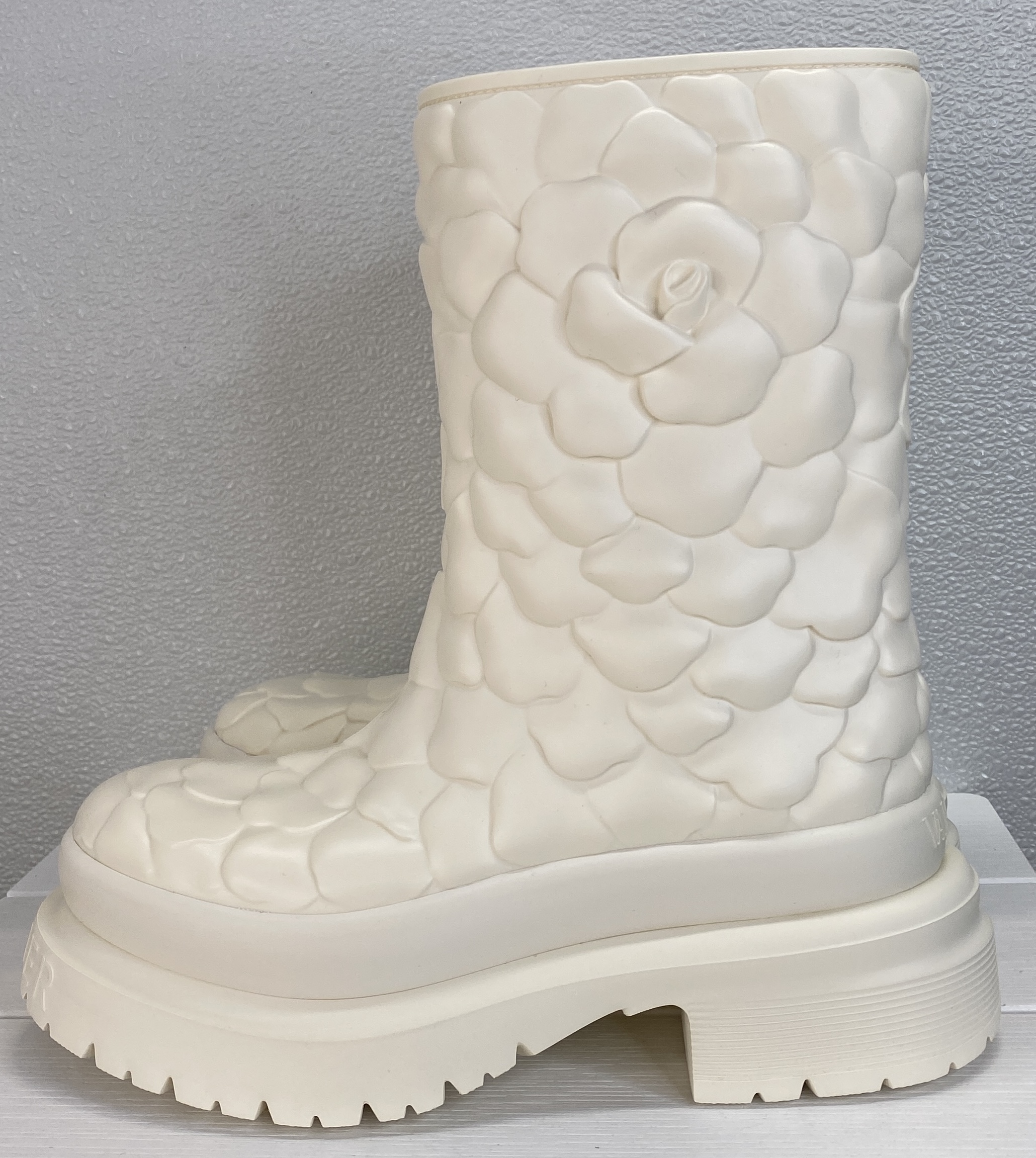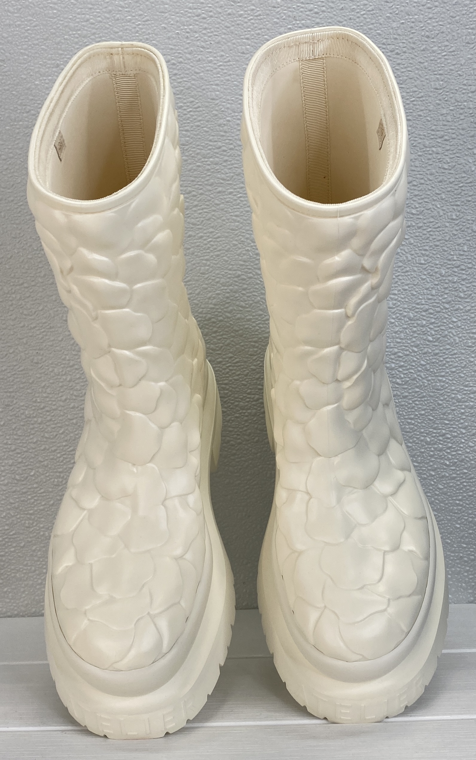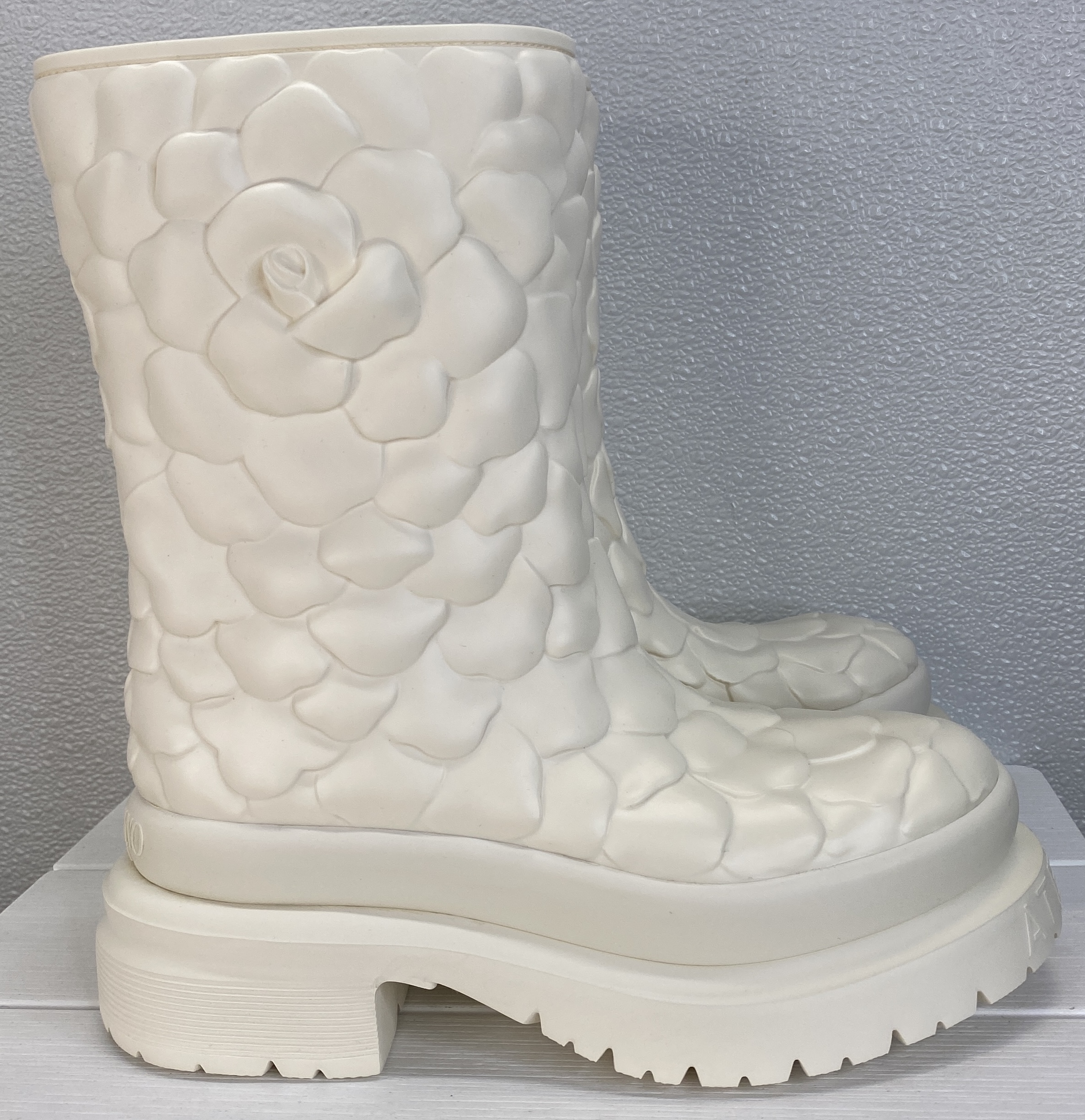 Valentino Garavani Atelier 03 Rain Boots Women Size 9 White Rose Rubber Ankle