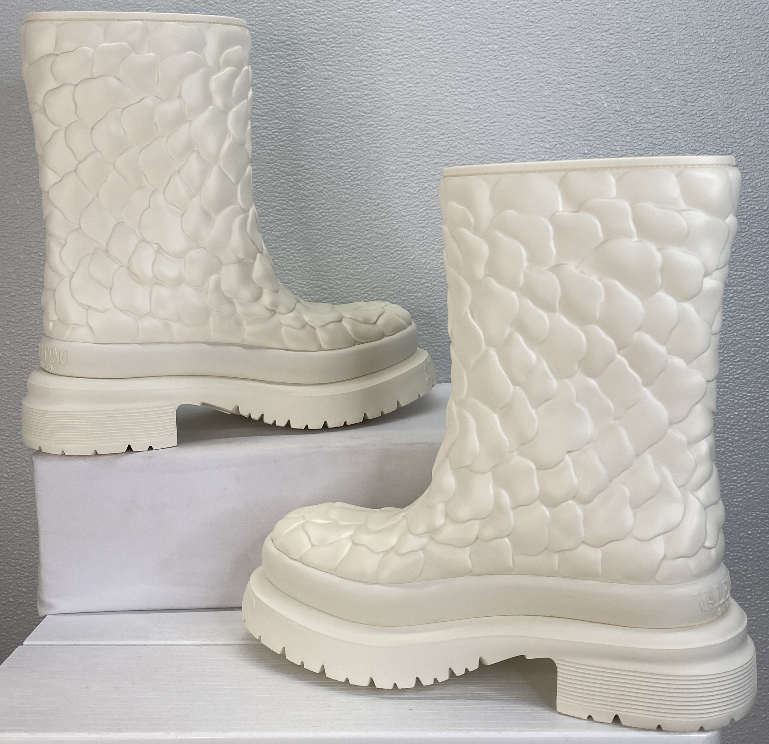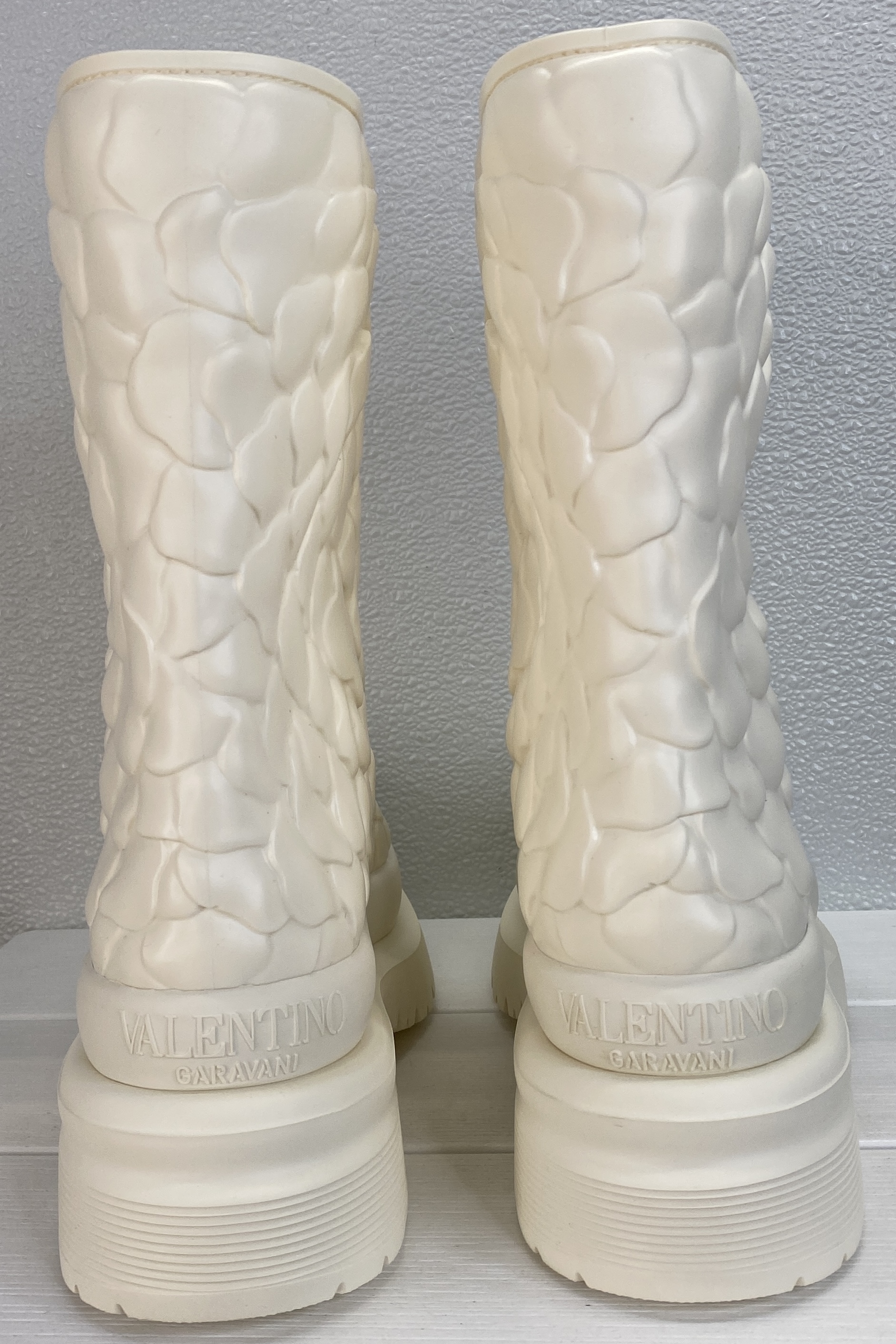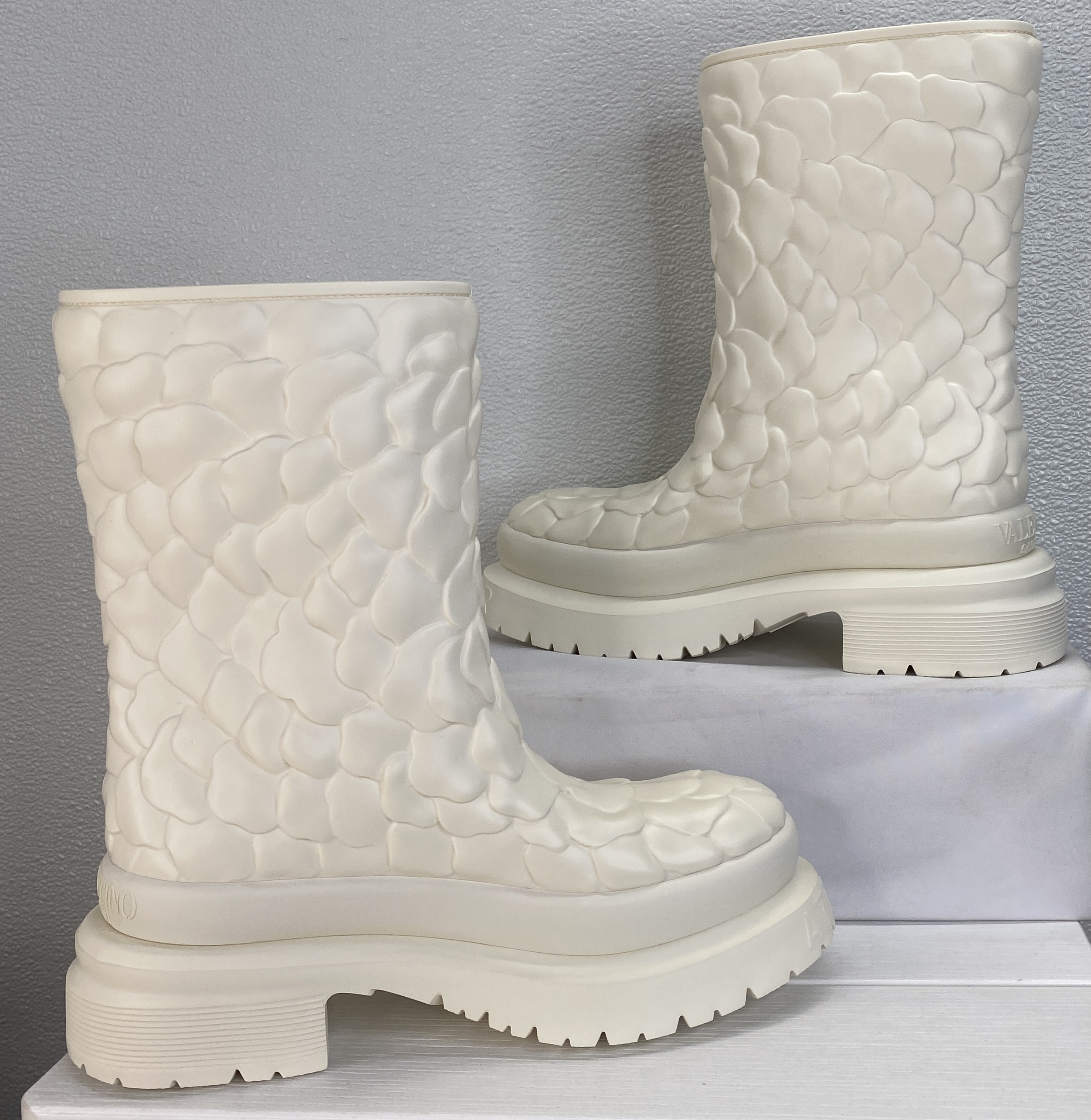 Valentino Garavani Atelier 03 Rain Boots Women Size 9 White Rose Rubber Ankle