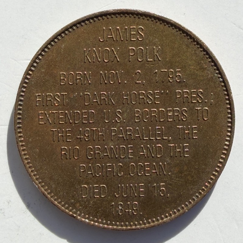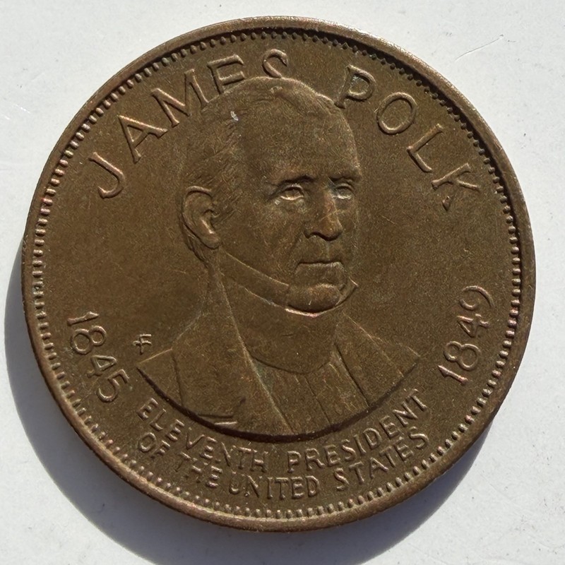 You are bidding on one: James K Polk Presidential Medal 1845-1849 Franklin Mint Medal 11th President of the United States Bust Obverse "Young Hickory" James Knox Polk Governor of Tennessee Speaker of the House Extended U.S. Boarders to 49th Parallel Annexed California New Mexico, N.W. Territory Man of Ability was Identified with Slave interest "First Dark Horse" Died June 15, 1849 Bronze Medal TC-729293 Round Medal 26 mm Comes in a 2x2 paper flip What a great Presidential Medal! If you are bidding on more than one item, email us through ebay when you are done and we will invoice you with an item total and a combined shipping price. Please do so before payment as we do not combine or change shipping amount after payment is made.We allow up to seven days of auctions to combine. Check out all our other items, Good Collecting on eBay, Coloradolabels |