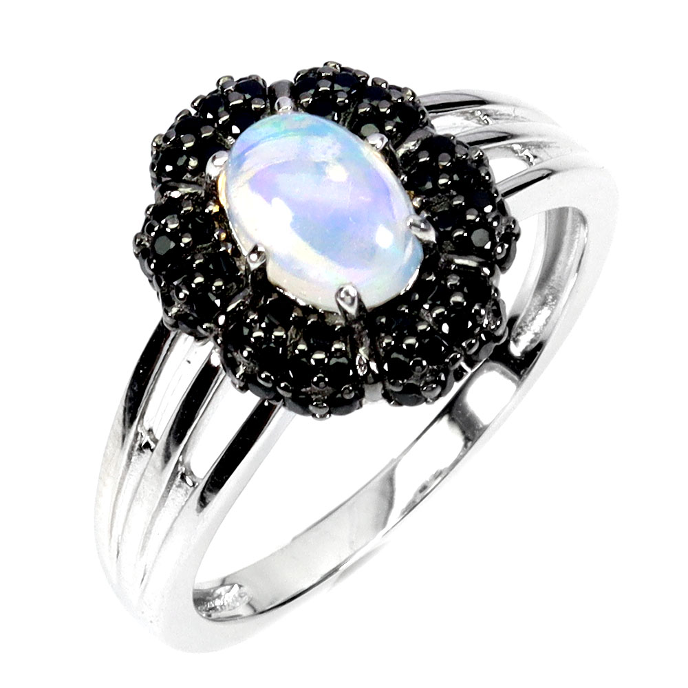 925 Sterling Silver Ring Oval Fire Opal 7x5mm Spinel Gemstone Jewelry Size 7.5
