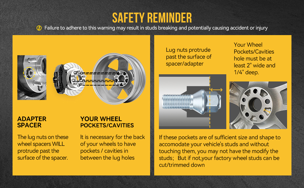 •After installation, test whether the wheel hub steering will cause friction with the wheel eyebrow. If friction occurs, it means that the flange of this thickness is not suitable for your vehicle. Please replace it in time.