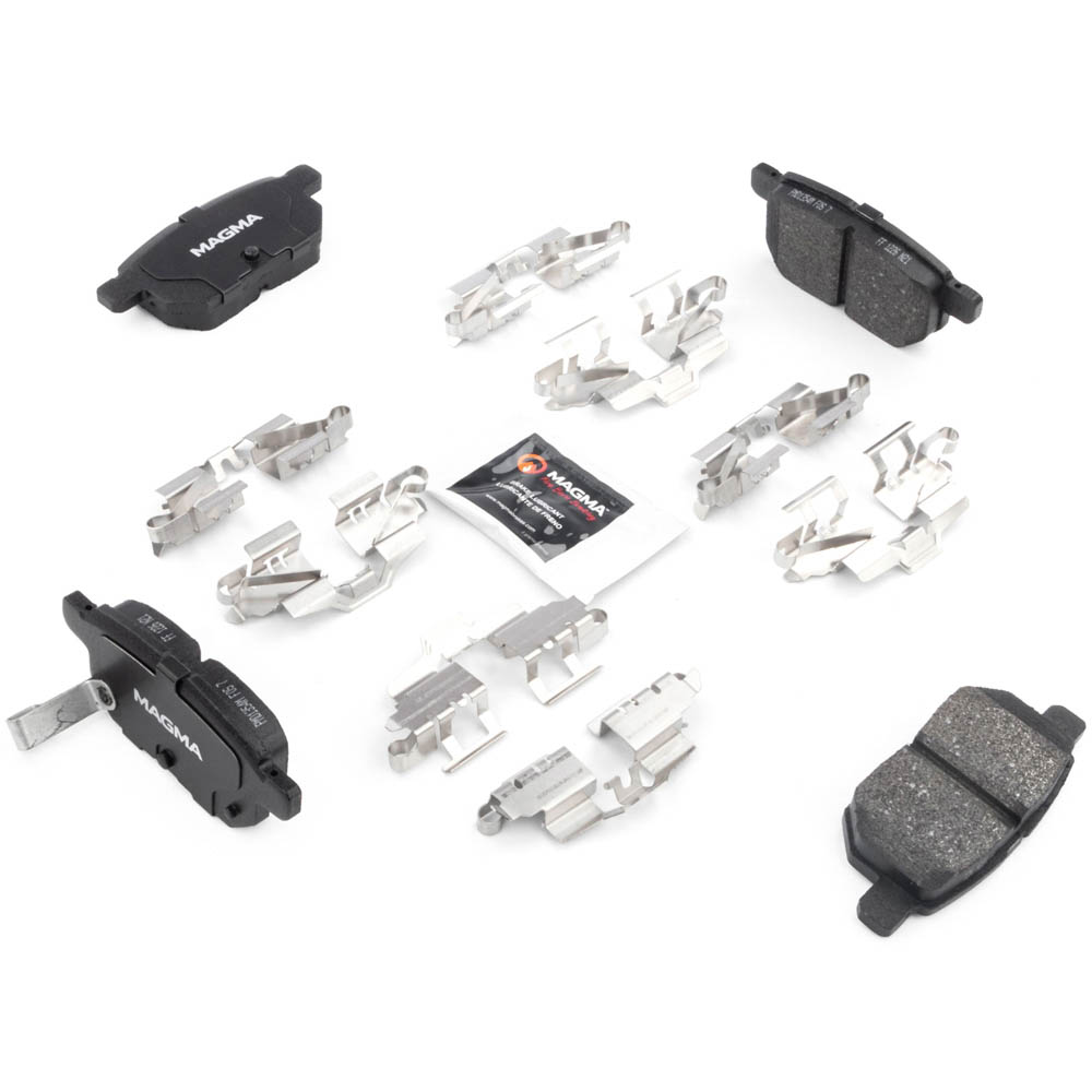 WHY MAGMA? - Today's harsh braking environments can create very high heat levels in your braking system which can reduce the vehicle's ability to stop. Extreme high temperatures can be reached in many braking situations such as - Stop and Go Traffic, Mountain Driving, Hauling or Towing, Emergency Stops, Spirited Driving and Long, Sustained Braking. At MAGMA Brakes, we use FIRE to fight FIRE. Our brake system components are made using advanced, state of the art techniques and treatments that ensure our brakes will stand up to the heat.MAGMA Premium brake pads feature...1. Scorched, copper-free friction formulations for optimal stopping power2. Heat-treated rubberized multi-layer shims for superior noise dampening3. Heat-tempered stainless steel hardware kits to restore the brake pad to caliper interface (where applicable)4. High-heat resistant brake lubricant included for lubricating critical points during pad installation
