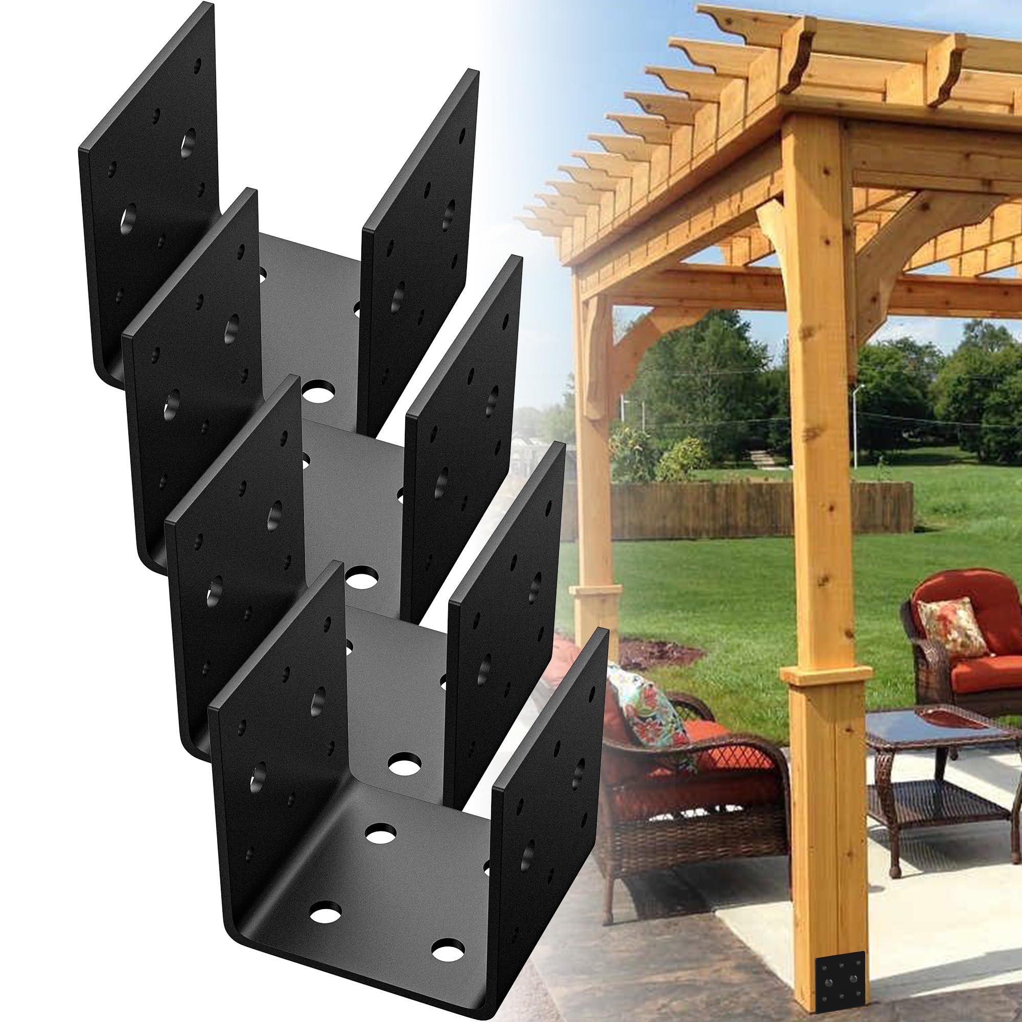 YUEYIN 4Pcs Heavy Duty Post Base Brackets for Gazebo & Pergola - Fit 4 x 4 Post Anchor Connector, Thickened & Multi-Hole Design, Steel, Black