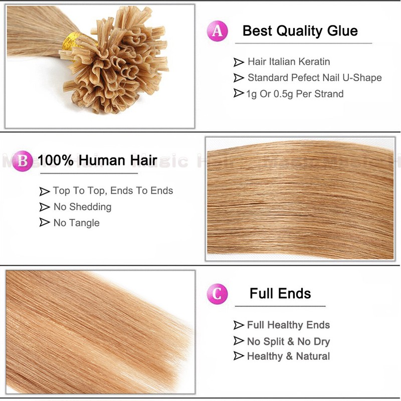 US HIGH QUALITY --- 100% Human Hair Fusion Pre Bonded Keratin Nail U Tip Extensions, Invisible & Comfortable & Natural |