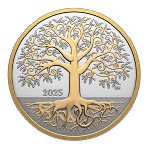 A powerful, enduring motif found in many cultures around the world, the tree of life is both beautifully rendered and selectively gold-plated on this ½-oz. 99.99% pure silver coin, where it symbolizes the cyclical nature and interconnectedness of all living things. In nature, the parts of the tree may be different from one another, but all are essential, each contributing to the whole in its own unique way; and on this coin, the curling branches and the silvery leaves are just as vital to this golden tree as the roots that ground it.