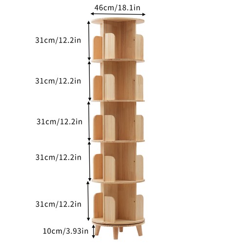 • Free Assembly: This Rotating Bookcase Has Five Tiers, Which Can Be Assembled As You Wish to Make 1, 2, 3 or 4 Tiers of Shelves.