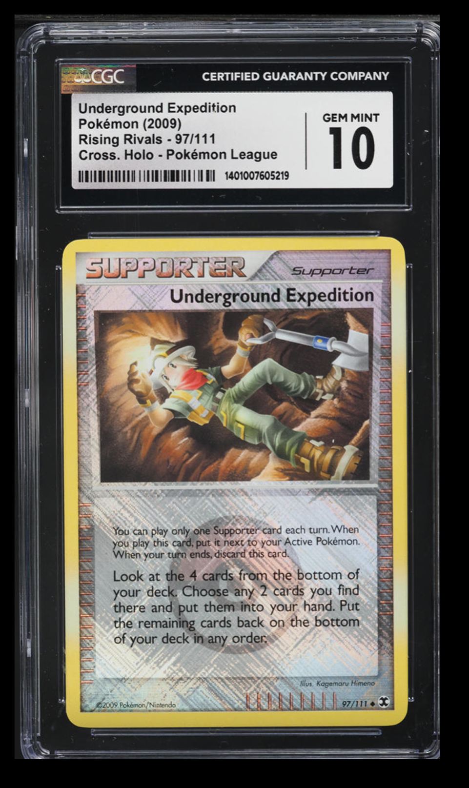 | Description: | Underground Expedition | | Category: | Pokemon | | Year: | 2009 | | Product: | Pokemon | | Set: | Rising Rivals | | Team: | English | | Card Number: | 97/111 | | Grade: | 10 CGC | | Special: | Cross. Holo Pokemon League | | Dimensions: | 5¼" x 3⅛" | | SKU: | PM GRD0067 R01 A (21) |