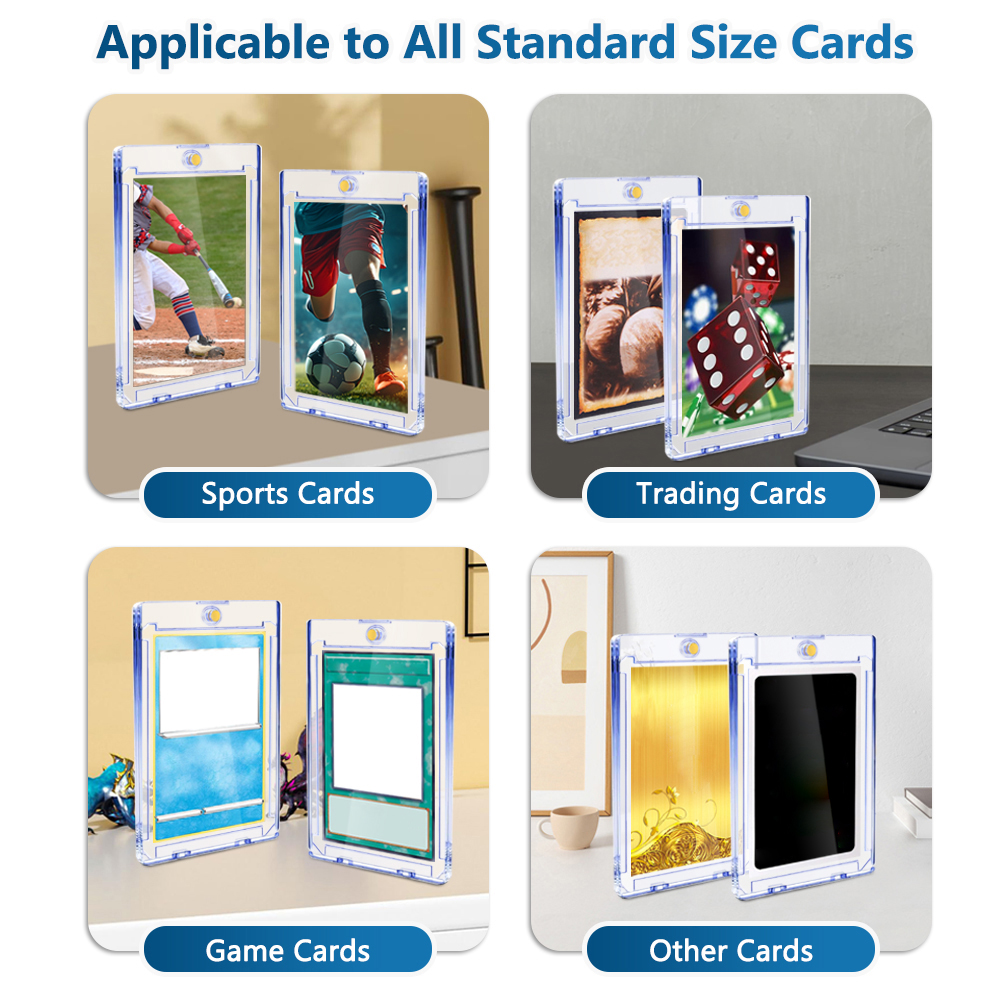 Standard Card Size: The Magnetic Card Holder fits the standard trading card size (2.5"x 3.5") up to 35PT-360PT point thickness. The trading card holder is suitable for baseball cards, basketball cards, football cards, hockey cards, and MORE.