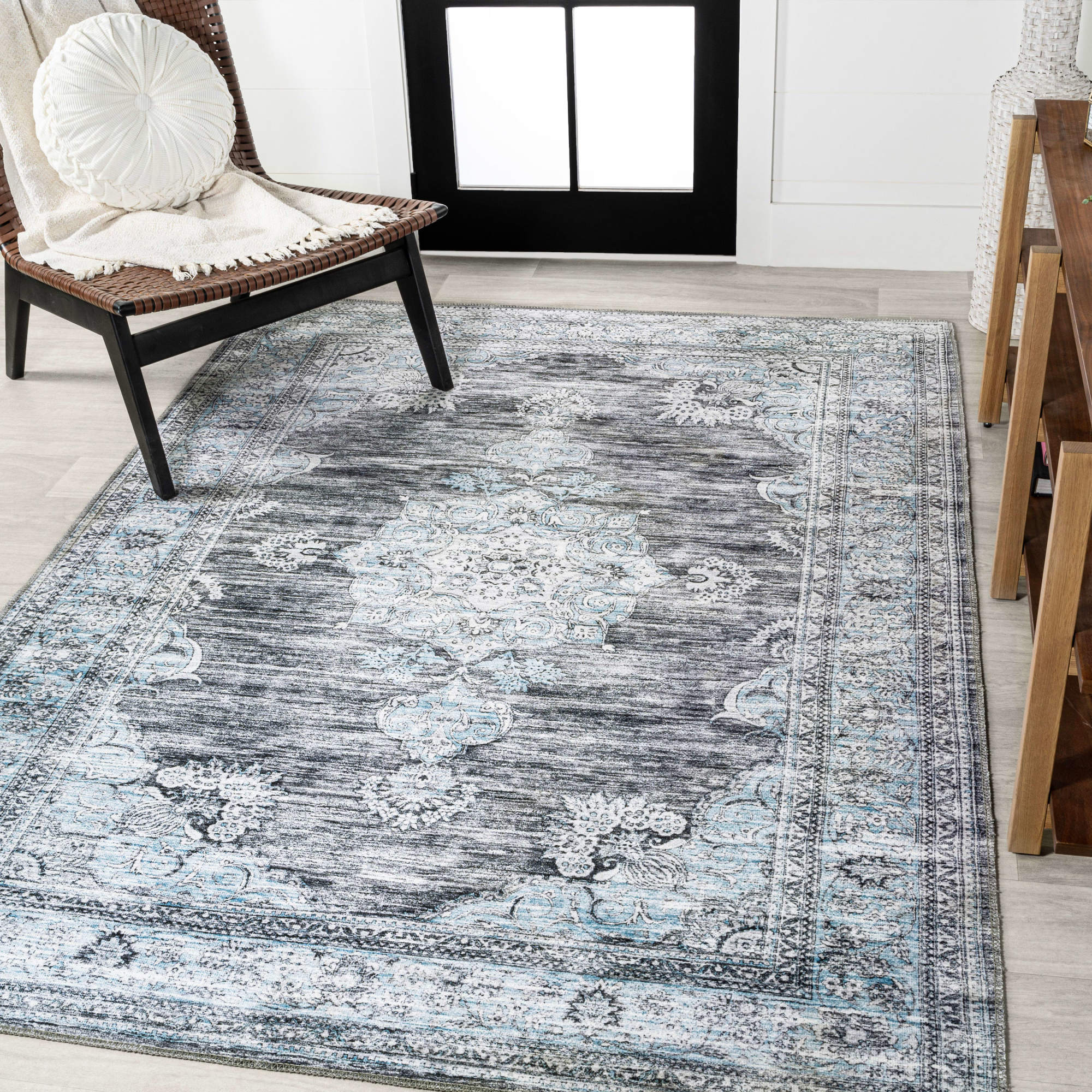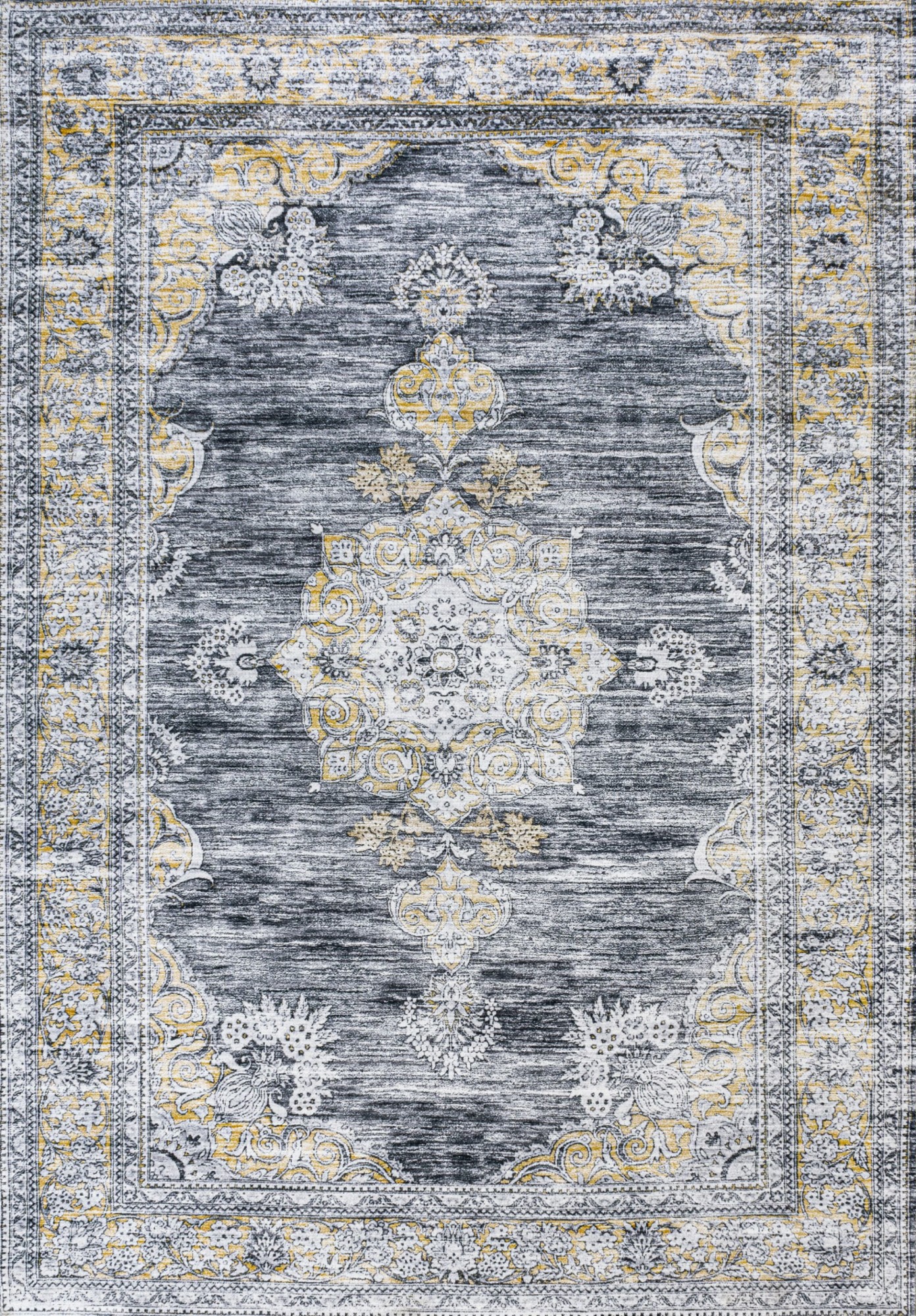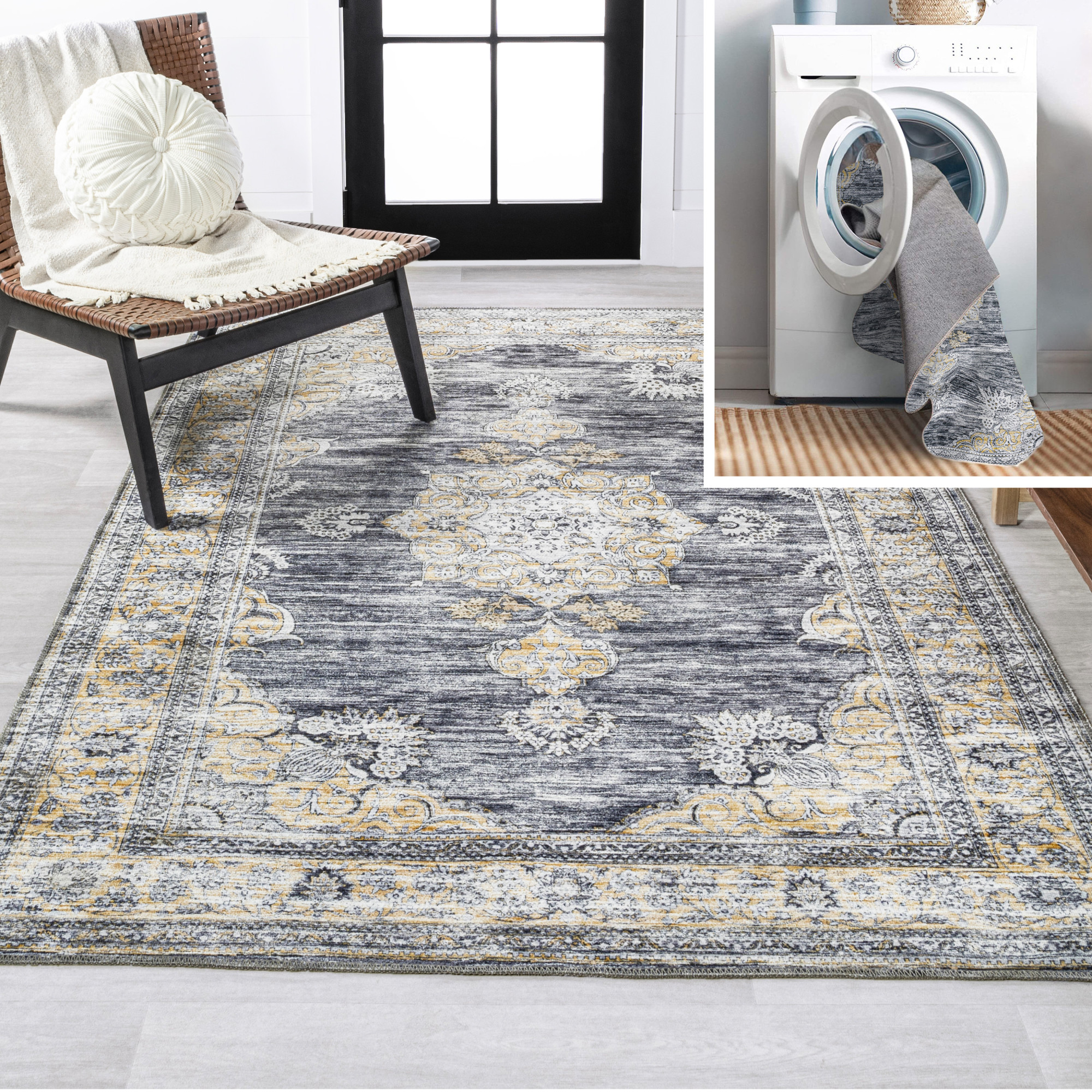 Item DescriptionOur distressed medallion rug adds a bohemian element to any home. Decked out with non-slip ridged backing, this rug is durable and machine-washable. This rustic chenille rug is the perfect addition to any living room or bedroom.